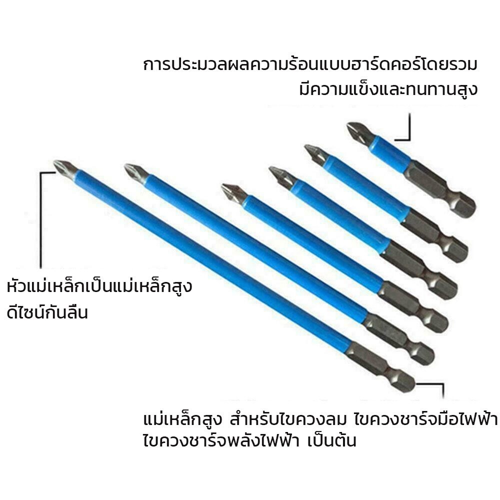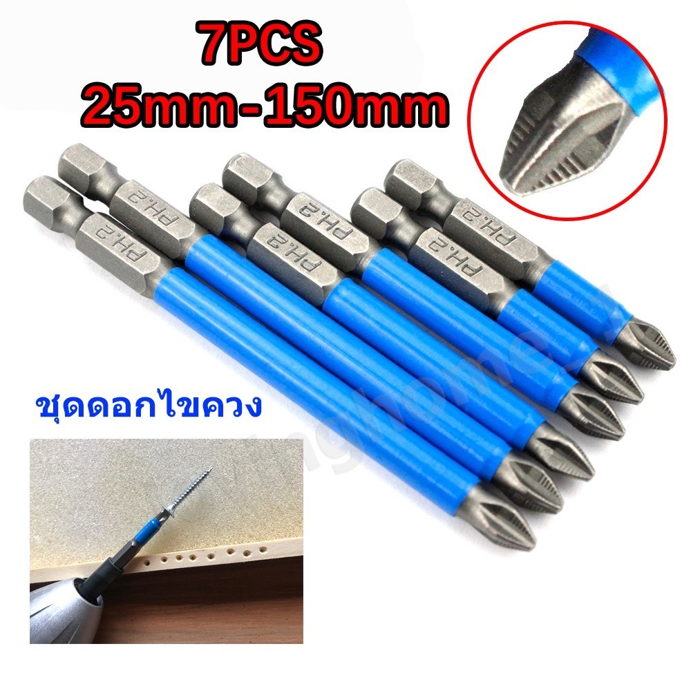 ดอกสว่านไขควงแม่เหล็ก 7PCS ชุดดอกไขควง ไขควงหัวแม่เหล็ก หัวแม่เหล็กที่แข็งแกร่ง 25mm~150mm ดอกสว่านแม่เหล็กกันลื่น