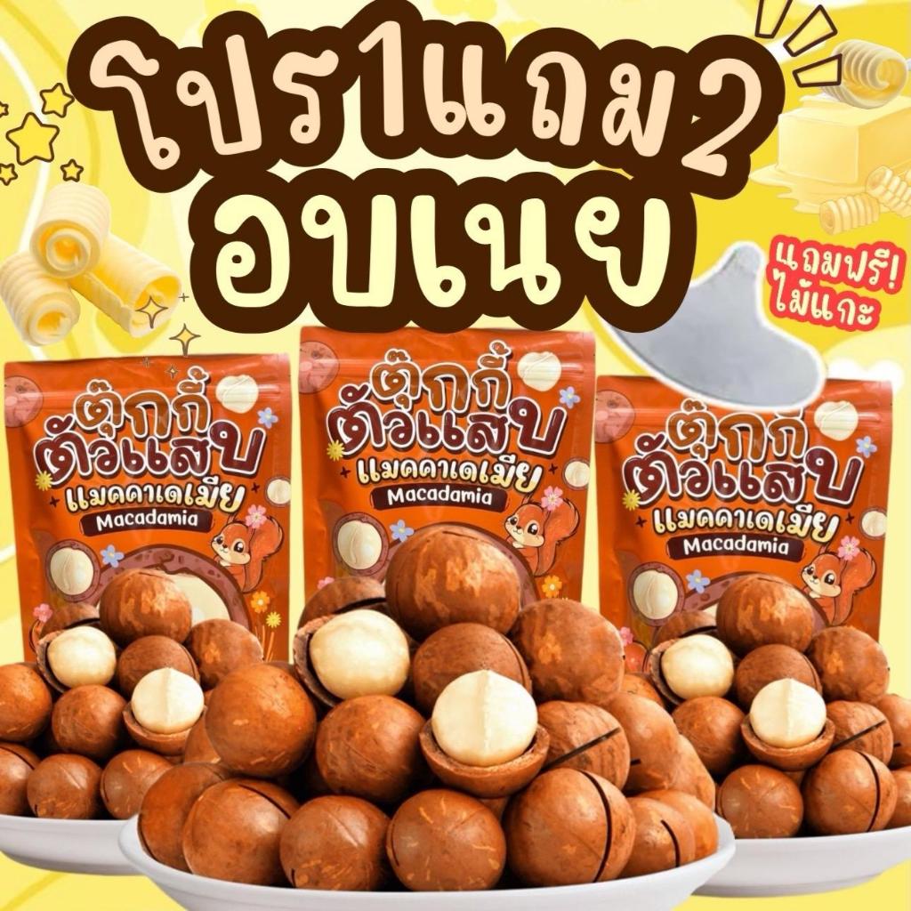 (ส่งด่วน) ลดแรง 1แถม2 ถุงละ100g. แมคคาเดเมีย เกรดพรีเมี่ยม เม็ดใหญ่ เปลือกบาง เนื้อเยอะ ตุ๊กกี้ตัวแสบ