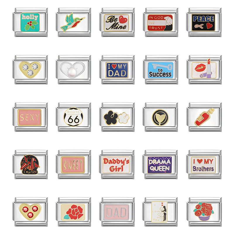 DIY ภาษาอิตาลี เสน่ห์ สร้อยข้อมือ ข้อต่อฟิตติ้ง 9 มม ใหม่ โมดูลเชื่อมโยง สเตนเลส 9 มม. สําหรับทําเครื่องประดับ สร้อยข้อมือ DIY