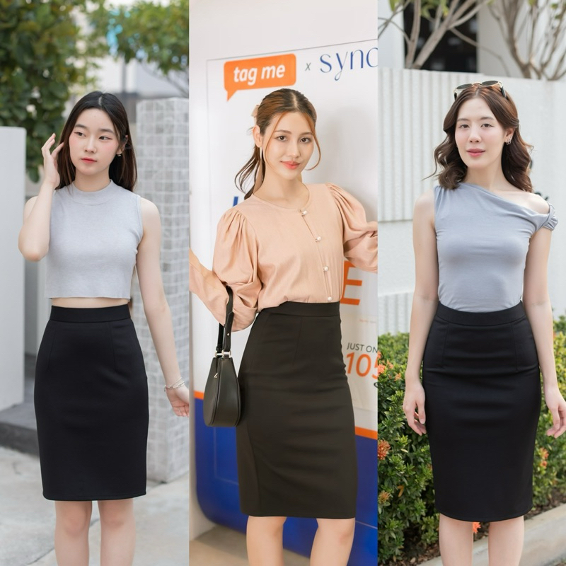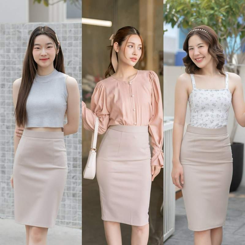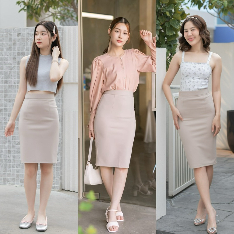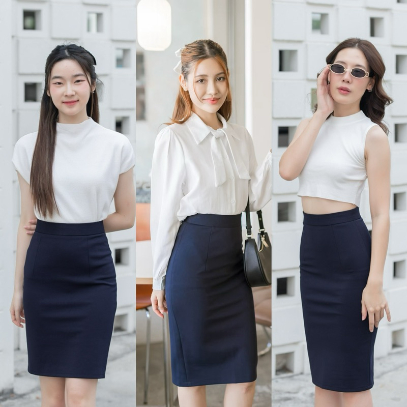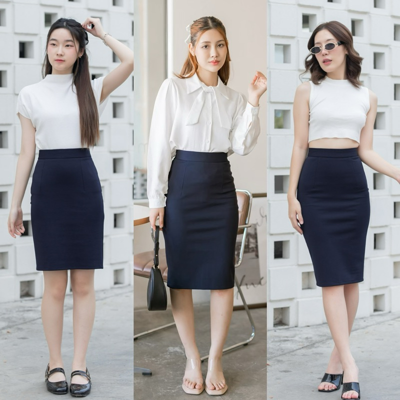 กระโปรงทำงาน เอวสูงขอบใหญ่ ยาว22-24-26นิ้ว ผ้าโรเชส หลากสี กระโปรงทรงเอ