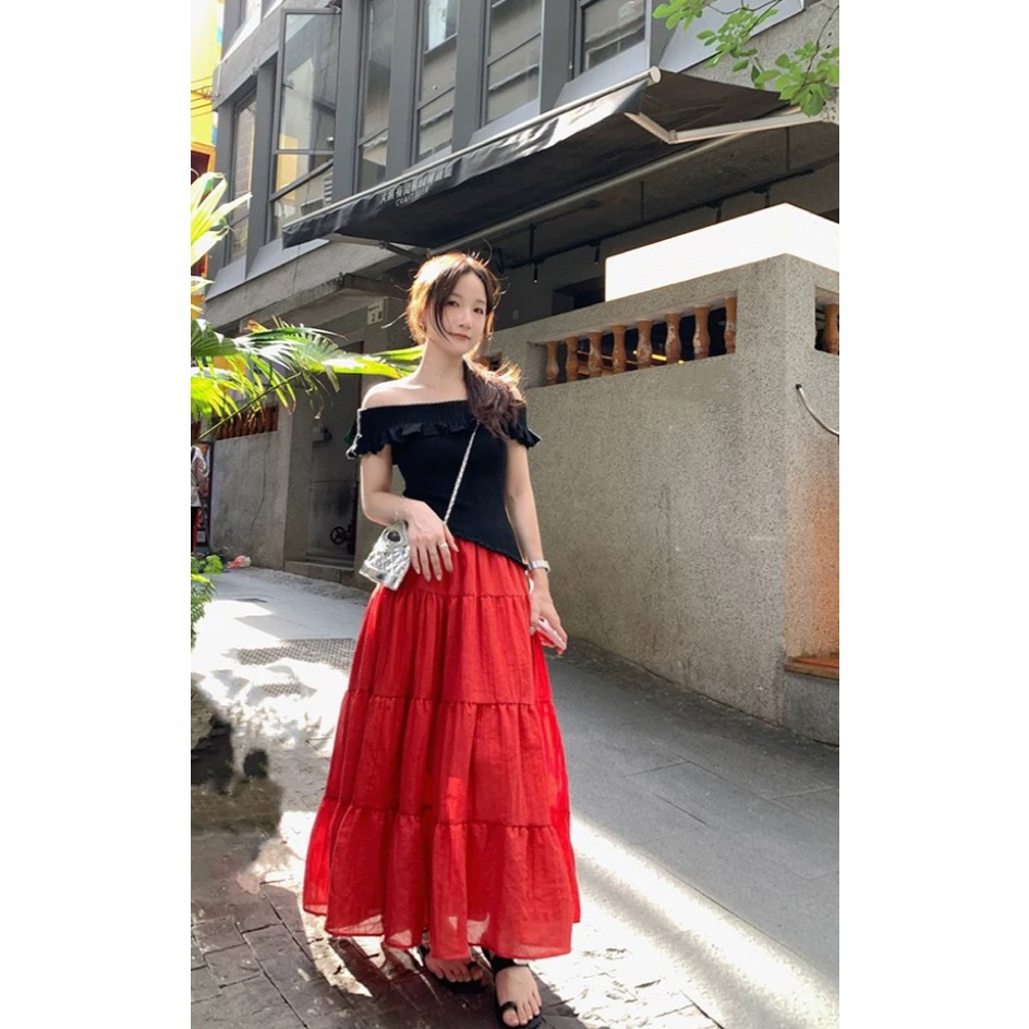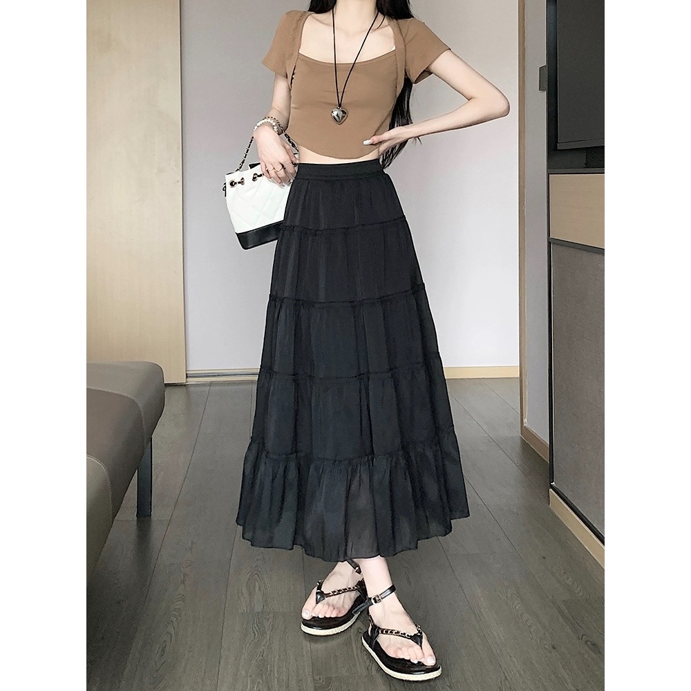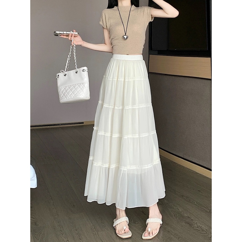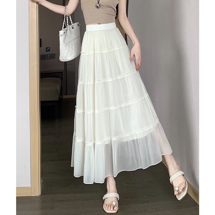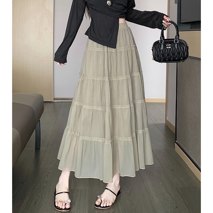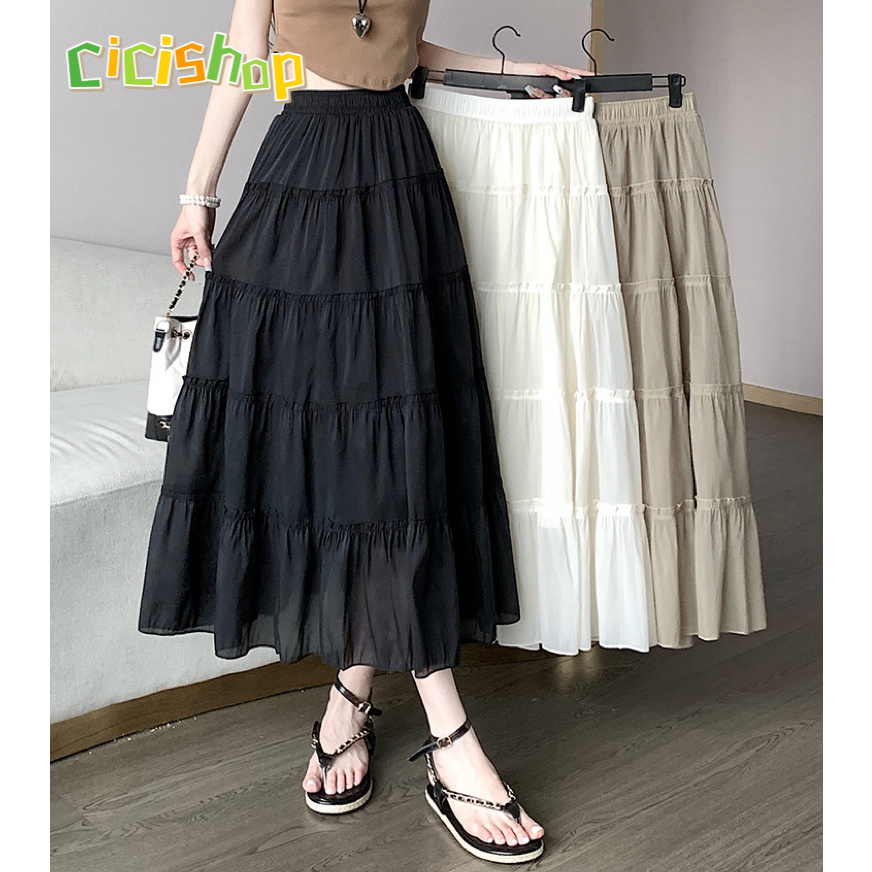 Cicishop(907)Layer Skirts กระโปรงยาวผ้าชีฟองสีพื้น ใส่สบาย สไตล์โบฮี่เมี่ยน สุดชิค