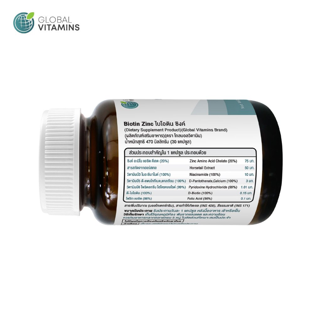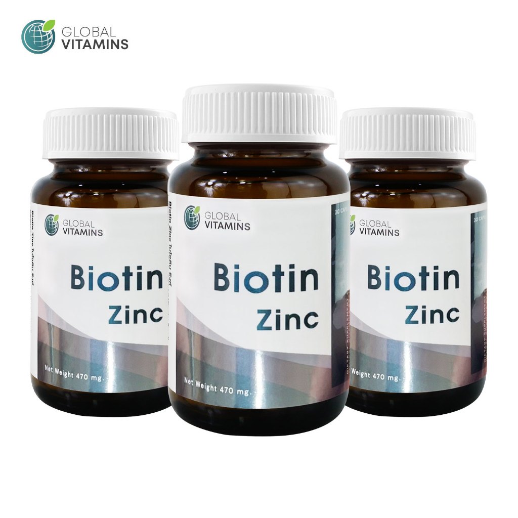 [แพ็ค 3 ขวด] ไบโอติน ซิงค์ โกลบอลวิตามิน Biotin Zinc Global Vitamins ไบโอตินซิงค์ หญ้าหางม้า สารสกัดจากหญ้าหางม้า