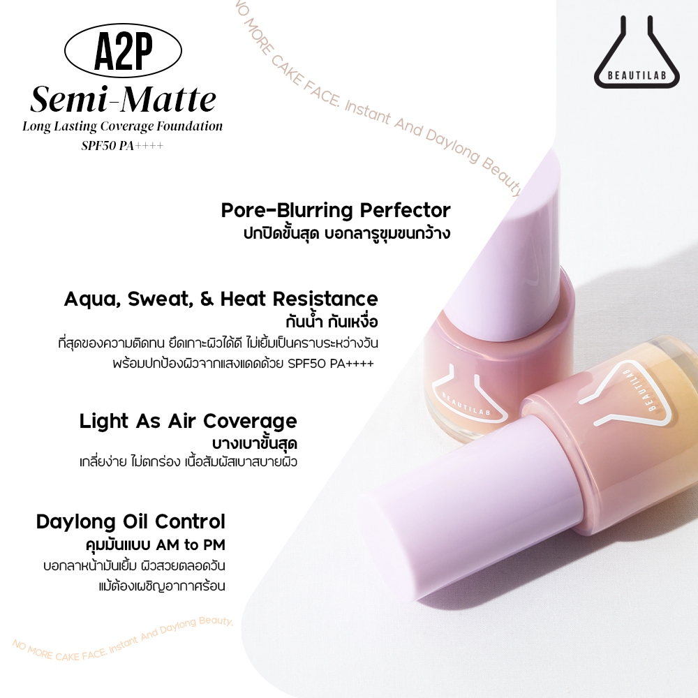 Beautilab A2P Semi-Matte Long Lasting Coverage Foundation SPF50 PA++++ รองพื้นเนื้อ Semi-Matte ปกปิด บางเบา คุมมัน
