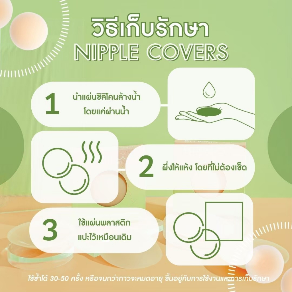 ... 1.ขนาดใหญ่ถึง 8*8 cm. ซึ่งความใหญ่นี้เข้าเต้าของเราได้มากกว่า ทำให้เวลาใส่เสื้อผ้าไม่ว่าจะรัดเเค่ไหนก็จะเนียนไปกับเต้า ไม่โป๊ะเเน่นอน 2.ซิลิโคนเกรดพรีเมี่ยม (solid silica gel) บีบยังไงก็จะคืนทรงกลับมาเเบบเดิม ไม่ผิดรูปแน่นอน แตกต่างจากตลาด100% 3.เหนียวแน่นติดทน ไม่มีหลุดระหว่างวัน ️สามารถใช้ได้มากกว่า 20-30 ครั้ง️ขึ้นอยู่กับการเก็บรักษา ใช้งานและเหนียวติดทนเเต่ไม่ระคายเคืองผิวเวลาดึงออก 4.สีที่เราทำออกมาเป็น skin สามารถสังเกตดูได้ว่าตรงขอบจะใสๆ แล้วเริ่มทึบเบลอตรงจุก ซึ่งเเบบนี้จะทำให้เข้าได้กับทุกสีผิว ไม่ว่าผิวแบบไหนก็สามารถใช้ที่ปิดจุกของเราได้ค่ะ วิธีใช้ ก่อนแปะจุกทำความสะอาดหน้าอกเราเองให้เรียบร้อยด้วยสบู่ ห้ามทาโลชั่น แป้ง ครีม ออย การทำความสะอาด - นำซิลิโคน ล้างน้ำเปล่า แล้วผึ่งให้แห้ง โดยไม่ต้องเช็ด แล้วนำพลาสติกกลับมาแปะเก็บไว้ วิธีเก็บรักษา - เมื่อแผ่นซิลิโคนแห้งแล้ว ก็ใช้พลาสติกแปะไว้เหมือนเดิม สามารถใช้ซ้ำได้หลายสิบครั้ง จนกว่ากาวจะหมดอายุ ขึ้นอยุ่กับการใช้งานและเก็บรักษา