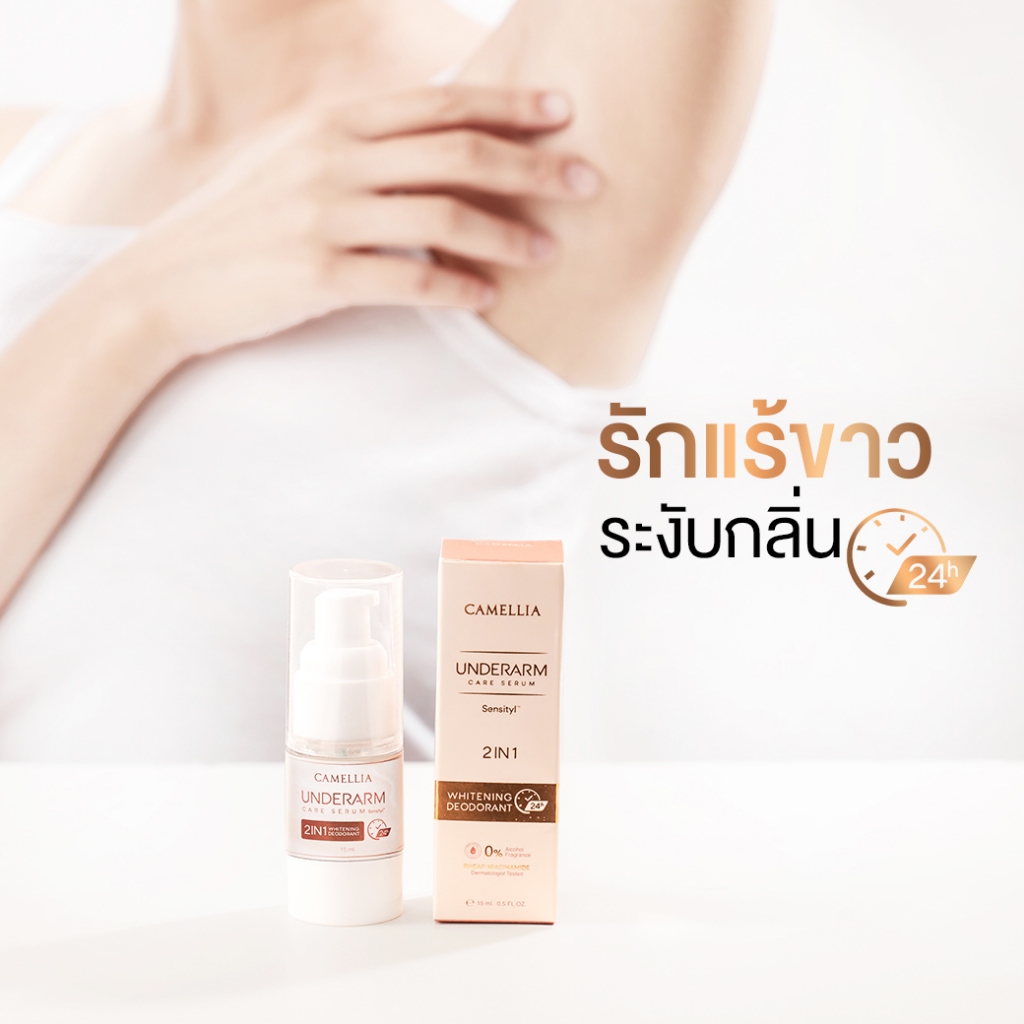 *ส่งฟรี!! เมื่อสั่งซื้อสินค้าครบ 500 บาทขึ้นไป Camellia Underarm Care Serum (ผลิตภัณฑ์ คามิเลียเซรั่มสำหรับรักแร้) - ระงับกลิ่นกาย ยาวนาน - ลดการสะสมแบคทีเรีย - บำรุงรักแร้ ขาว เนียนนุ่ม - ลดตุ่มหนังไก่ - ไม่ทิ้งคราบเหลือง นวัตกรรม Sensityl ชนะรางวัล "Beauty Industry Award" จากฝรั่งเศ