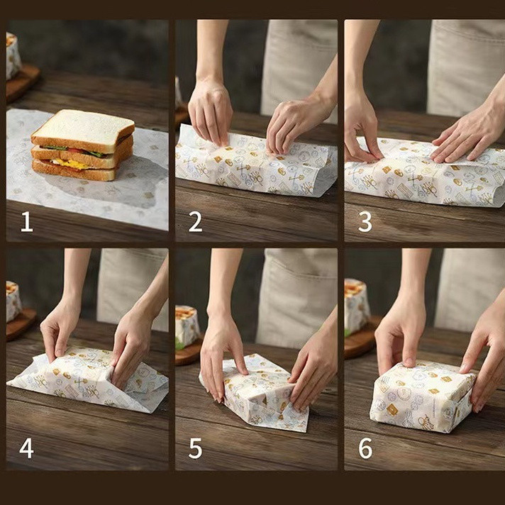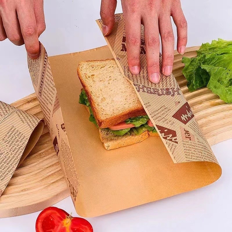 กระดาษห่อแซนวิช (100ใบ/แพ็ค)ขนาด 28*38 ซม. ห่อเบอร์เกอร์ เบเกอรี่ ห่ออาหาร และรองอาหาร