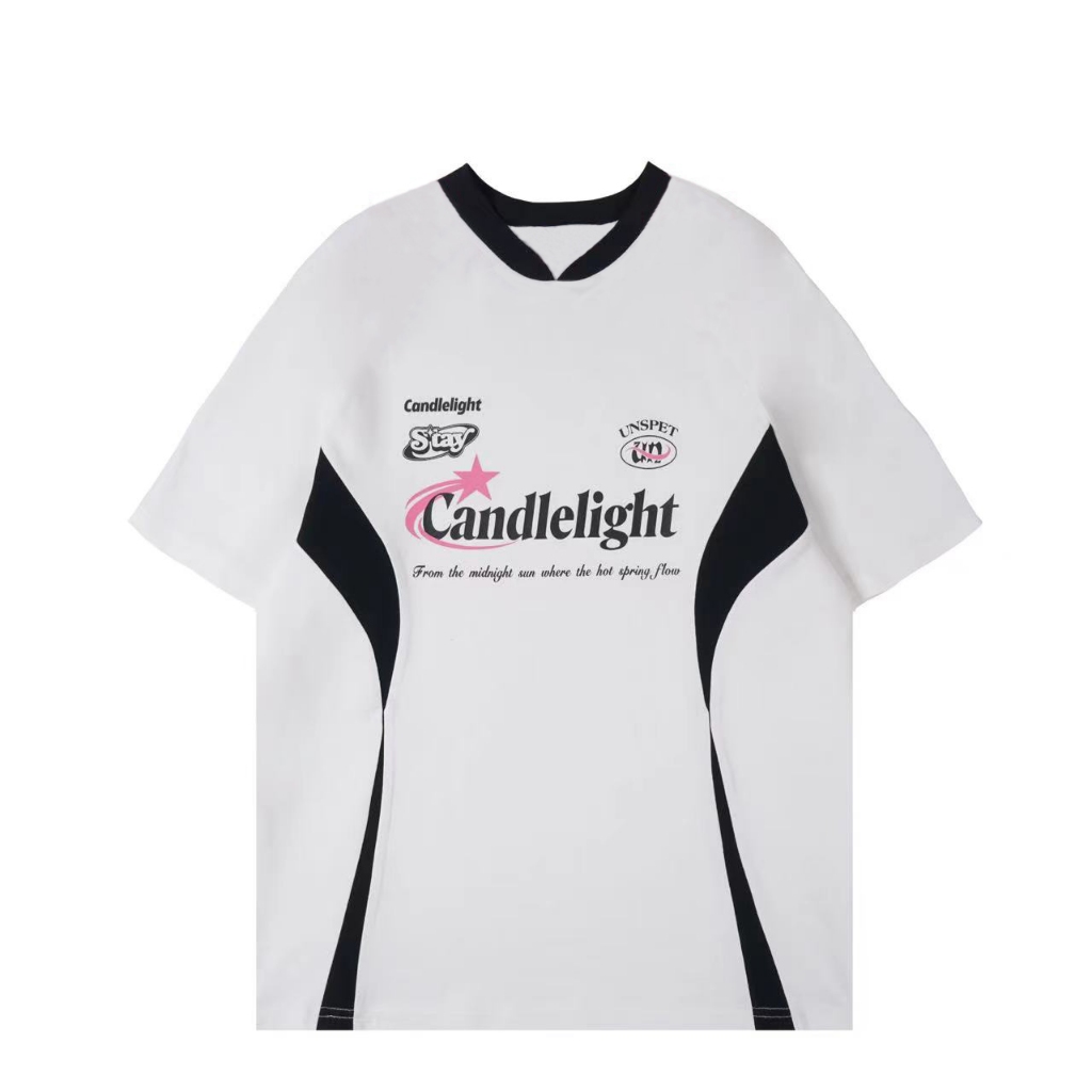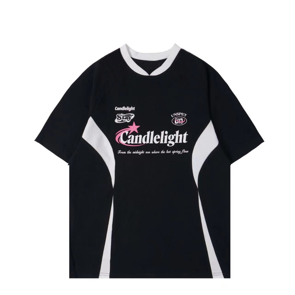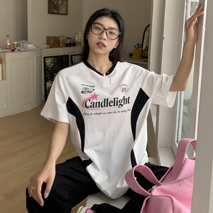 Betty House🧁เสื้อยืดสีตัดกันแบบอเมริกัน💥2024 สีย้อนยุคใหม่จับคู่แขนสั้นหลวมหวานและเท่ที่สาว ๆ ต้องมี