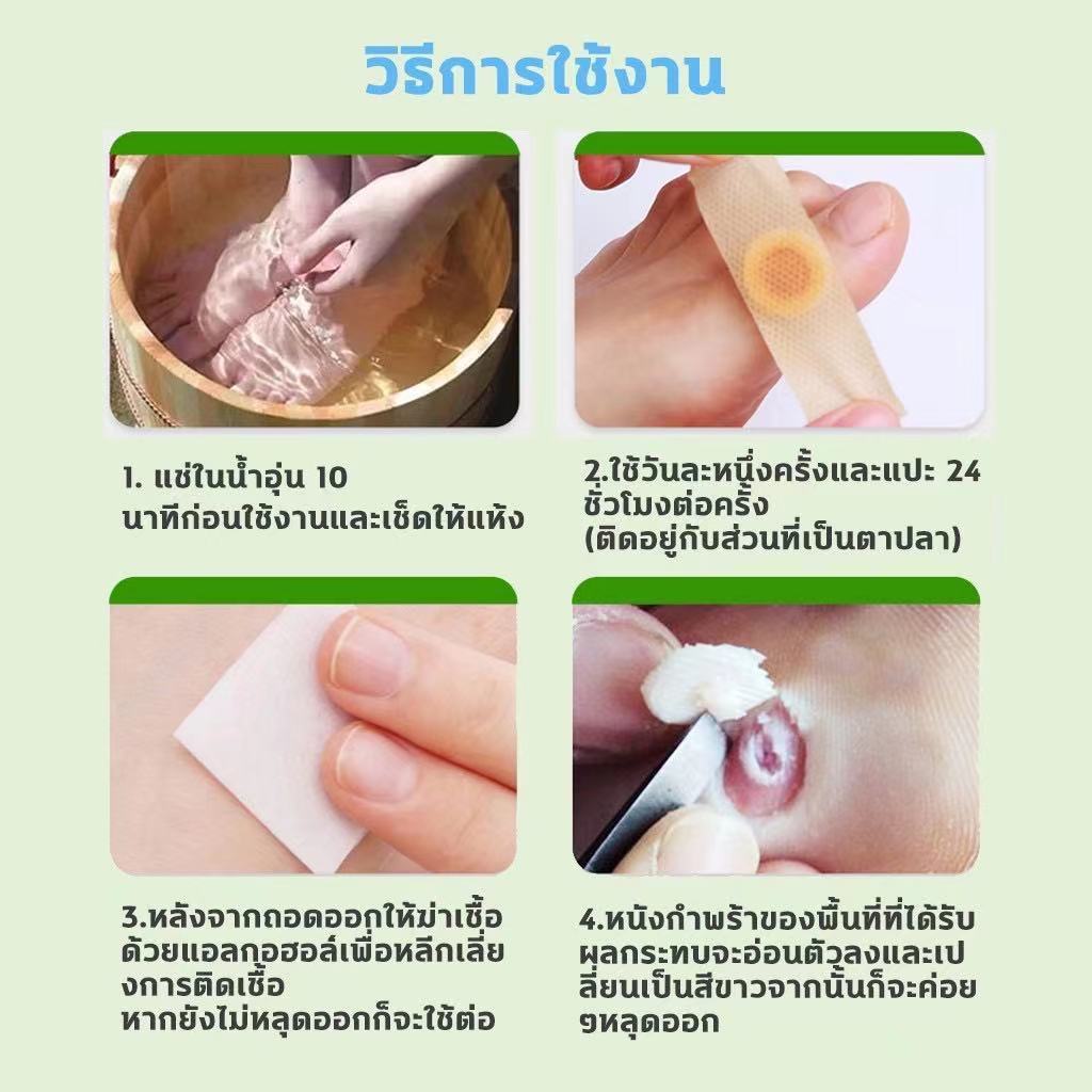 ... า ติดไว้ประมาณ 2-3 วัน แล้วแกะออก ตรงส่วที่เป็นตาปลาจะเปลี่ยนเป็นสีขาว **ถ้าเกิดว่าจุดที่แปะเคลื่อนที่ ก็ให้เปลี่ยนเป็นแผ่นใหม่ 3 .วิธีการลอกหนังที่หลุดออกมา ให้ใช้เข็มหรืออุปกรณ์อื่นๆในการแคะ โดยถ้าเกิดเจ็บให้หยุดทำทันที และถ้าแช่น้ำอุ่นไปด้วยก็จะทำให้แคะออกได้ง่ายขึ้น 4. ทำข้อ 1-3 ซ้ำจนส่วนที่เป็นหนังแข็งๆลอกออกหมด หลังจากหนังลอกออกหมดแล้วหนังใหม่จะขึ้นมาโดยธรมชาติ ตัวพลาสเตอร์นี้มีส่วนผสมของกรดซาลิไซลิก (Salicylic acid) ผสมอยู่เพื่อทำให้หูดหรือตาปลาอ่อนตัวลงและหลุดออกมาง่ายๆ *ถ้าเกิดว่าส่วนของตาปลาลอกออกไปไม่หมดจะทำให้เกิดตาปลาขึ้นมาใหม่อีกครั้ง 5. มีข้อควรระวังขณะติดพลาสเตอร์ คือ ❌❌งดใส่รองเท้าที่คับมากเกินไป❌❌