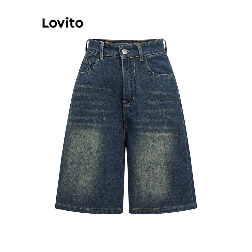 Lovito กางเกงยีนส์ขาสั้นสำหรับผู้หญิงกระเป๋าธรรมดาสบาย ๆ ยีนส์สั้นสำหรับผู้หญิง L93AD053(หลากสี)