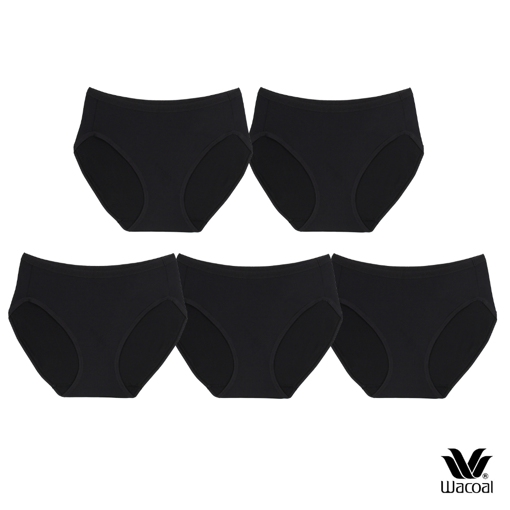 Wacoal Bikini Panty กางเกงในใส่สบายวาโก้ รูปแบบบิกินี่ แพ็ค 5 ชิ้น รุ่น WU1C34/WU1F34 สีดำ (BB)