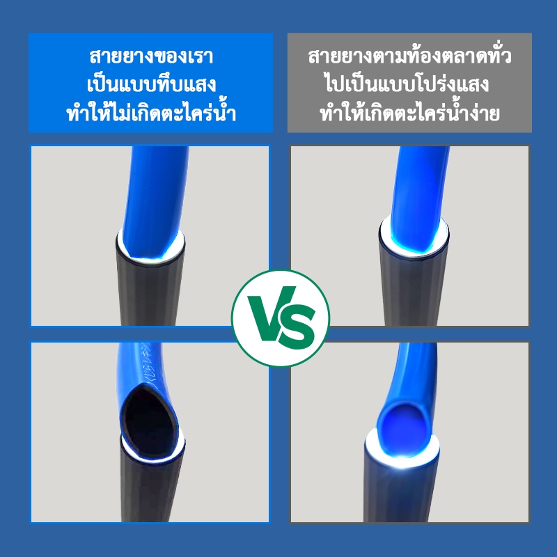 ... งง่าย 🙏ขอบคุณ ทำไมถึงเลือกพวกเรา❓❓❓ ท่อน้ำตามท้องตลาดโดยทั่วไปเป็นแบบชั้นเดียว ด้านในของท่อน้ำเป็นแบบส่งผ่านแสง ซึ่งทำให้ตะไคร่น้ำเจริญเติบโตได้ง่าย ท่ออ่อนมีแนวโน้มที่จะเกิดการระเบิดและมีอายุการใช้งานไม่นาน ซีรีย์คุจิระแบรนด์ของเราได้อัพเกรดโครงสร้างสองชั้นและโครงสร้างสามชั้นเพิ่มชั้นในทึบแสงซึ่งไม่ใช่เรื่องง่ายที่จะปลูกมอสและเพิ่มผ้ากอซซึ่งไม่ใช่เรื่องง่ายที่จะระเบิดและมีความทนทานดีขึ้นทำให้ ครอบคลุมมากขึ้นทั้งในด้านคุณภาพและฟังก์ชันการทำงาน (โปรดดูวิดีโอที่เชื่อมโยงอย่างละเอียดเพื่อเรียนรู้เกี่ยวกับคุณสมบัติของท่อ 2 และ 3 ชั้นของเรา) ข้อดีของโครงสร้าง 3 ชั้น❓❓❓ 👍ชั้นที่1:วัสดุพลาสติกมีความยืดหยุ่นและช่วยลดการพับและหักงอ 👍ชั้นที่2::เส้นด้ายถักแบบตาข่าย มีความหนาและทนแรงอัดได้สูง เพื่อป้องกันการระเบิดและทนทานต่อการพับงอและแรงกดทับ 👍ชั้นที่3:ผนังด้านในเป็นพื้นเรียบเนียนป้องกันไม่ให้เศษฝุ่นและสิ่งตกค้างติดกับผนังท่อ ช่วยชะลอการสังเคราะห์แสงอย่างมีประสิทธิภาพ และป้องกันการเกิดตะไคร่น้ำ ช่วยรักษาผนังด้านในของท่อน้ำให้สะอาดไร้สิ่งตกค้าง ความแตกต่างระหว่างโครงสร้าง 2 ชั้น และ 3 ชั้น❓❓❓ ✅โครงสร้างท่อน้ำสามชั้นมีเส้นด้ายพิเศษอยู่ภายในซึ่งไม่ระเบิดง่ายและคาดว่าจะใช้งานได้นาน 4-6 ปี ✅โครงสร้างสามชั้นของท่อน้ำมีลักษณะเป็นพื้นผิว ลักษณะของท่อน้ำที่มีโครงสร้าง 2 ชั้นมีความเรียบลื่น ✳️ขายเป็นม้วน ความยาวม้วนละ 10 เมตร , 15 เมตร 20 เมตร , 30 เมตร , 50 เมตร(ถ้าคุณต้องการ 100 เมตรหรือนานกว่านั้น คุณสามารถติดต่อฝ่ายบริการลูกค้าของเราได้) 🚫ถ้าใช้งานกับปั๊มน้ำและหัวฉีด ไม่แนะนำให้ปิดน้ำที่หัวฉีดแล้วเปิดก็อกน้ำทิ้งไว้ จะทำให้สายยางเสื่อมสภาพเร็ว และแตกได้ 📦ลูกค้าสามารถเลือกบริษัทขนส่งได้ Kerry, DHL, Ninja Van เป็นต้น 🍀 ขนาดรูเป็นท่อน้ำมืออาชีพ 5 (15 มม.) ใช้กับก๊อกน้ำขนาด 5 นิ้ว (ก๊อกน้ำ 5/8 นิ้ว) 🌾สามารถใช้กลางแจ้งได้นาน 4-6 ปีโดยไม่มีการแข็งตัวจนกรอบ และใช้งานได้นาน และโครงสร้างแบบ 3 ชั้นจะไม่เกิดตะไคร่น้ำ 🌹สายยางเป็นสีน้ำเงินทึบ ด้านในเป็นวัสดุ PVC ป้องกันตะไคร่น้ำ โดยที่สายยางเป็นประเภททึบแสง จะไม่สังเคราะห์แสงและเกิดตะไคร่น้ำ 🌴วัสดุ PVC มีความหนาแน่นและยืดหยุ่นสูง ผิวไม่บาง ไม่พับและหักงอง่าย 💧ผลิตจากเทคโนโลยีใหม่ PVC ยืดหยุ่นสูงระดับพรีเมียม 100% นุ่ม ยืดหยุ่น และมีความทนทานสูง 🌱เหมาะสำหรับรดน้ำต้นไม้ และใช้ในการส่งน้ำ 🌼ผลิตจากโรงงานมาตรฐานในประเทศไทย #สายยาง #สายยางฟโอ #สายยางรดนการทำเช่นนั้นทำได้ดี