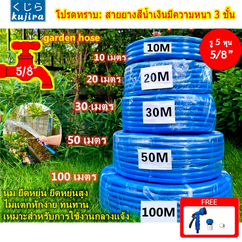 【โครงสร้างหนา 3 ชั้น】สายยาง 5 หุน สายยางสีฟ้า 5/8" รดน้ำต้นไม้ 10-50 เมตร นิ่ม เด้ง อย่างดี 6ปีไม่แข็งกรอบ พร้อมหัวฉีดท่อน้ำ การล้างรถสะดวกมาก