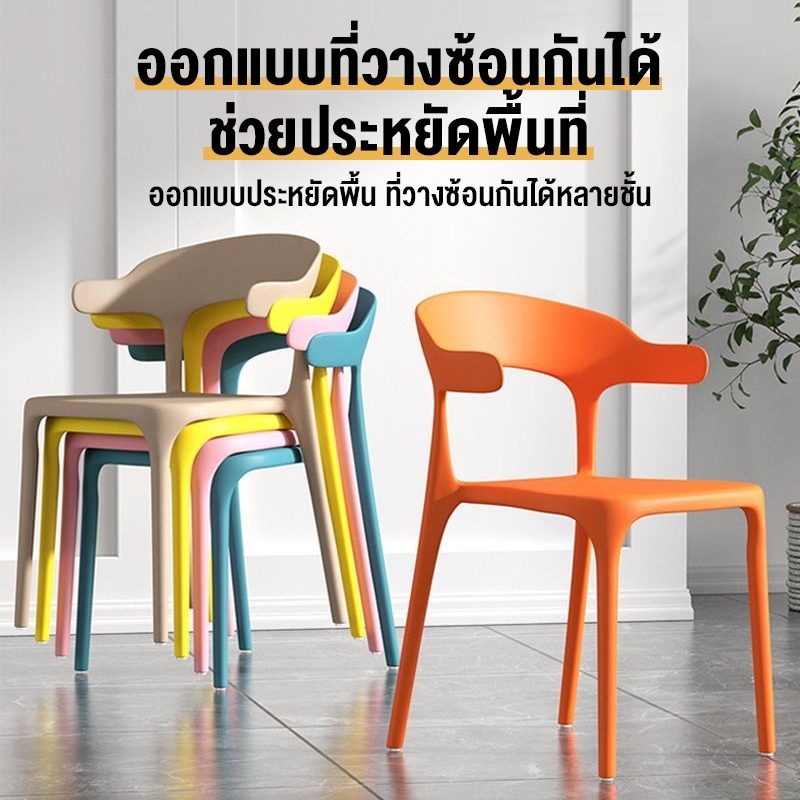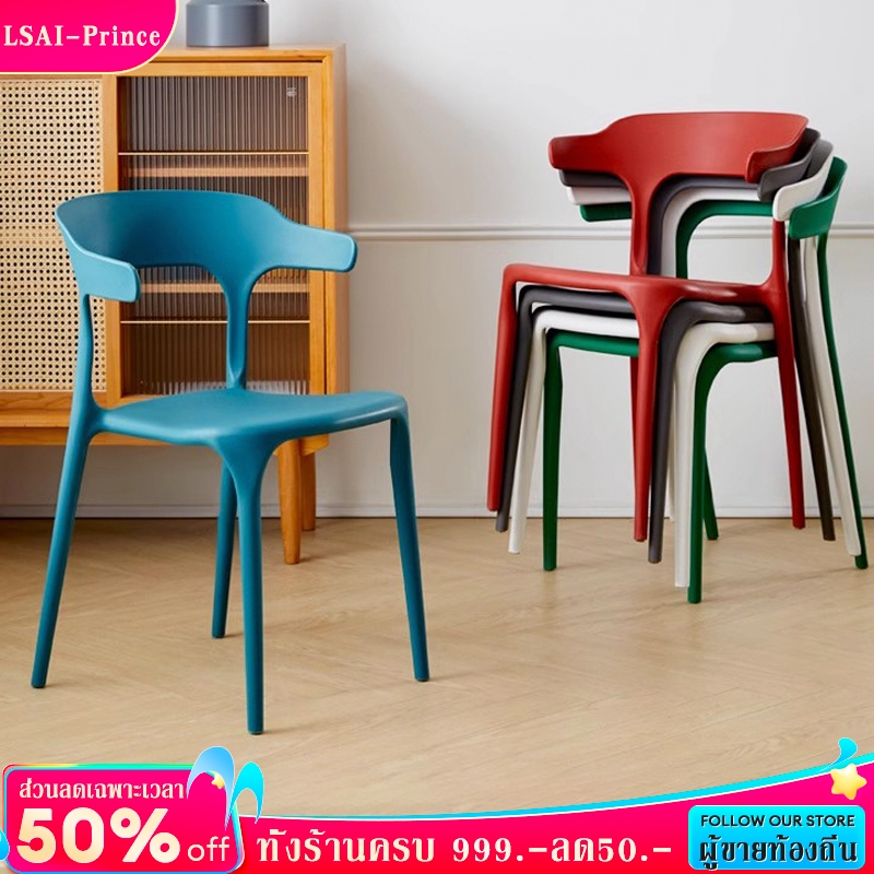 LP เก้าอี้ เก้าอี้กินข้าว เก้าอี้พลาสติก มีพนักพิง 39*45*74cm รับได้ 300 กิโลกรัม ประหยัดพื้นที่ ไม่ต้องต่อประกอบ