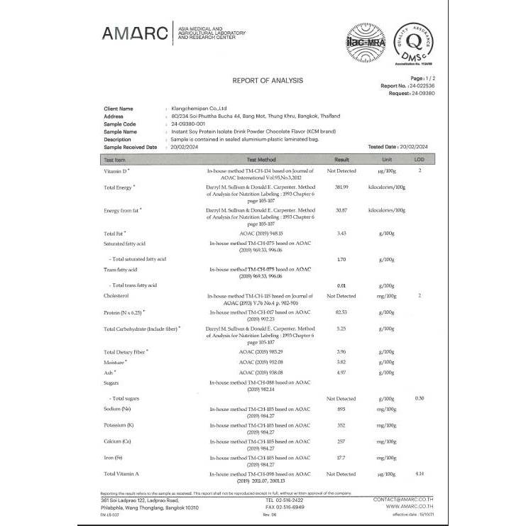 Protein Isolate KCM Soy รสช้อคโกแลต (1 ซอง 450 กรัม) โกโก้นำเข้าจากเนเธอร์แลนด์(Dutch Cocoa)