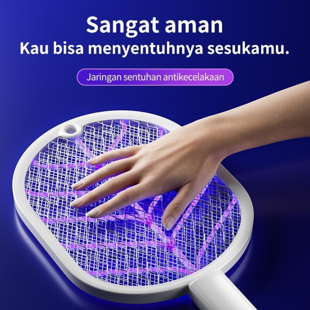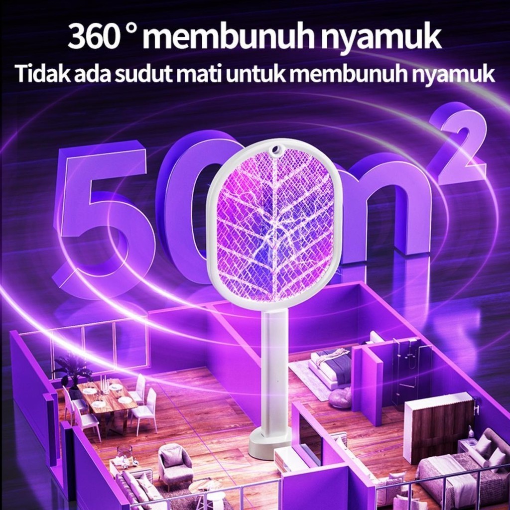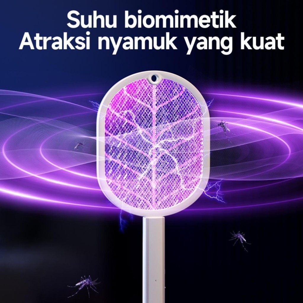 ไม้ช็อตยุงไฟฟ้า ไม้ตียุง 2-in-1 ที่ดักยุงไม้ตียุงไฟฟ้า ขนาด3,000V พร้อมสายUSBและแท่นวาง พร้อมไฟดักยุงแสงสีม่วง ใช้งานได้