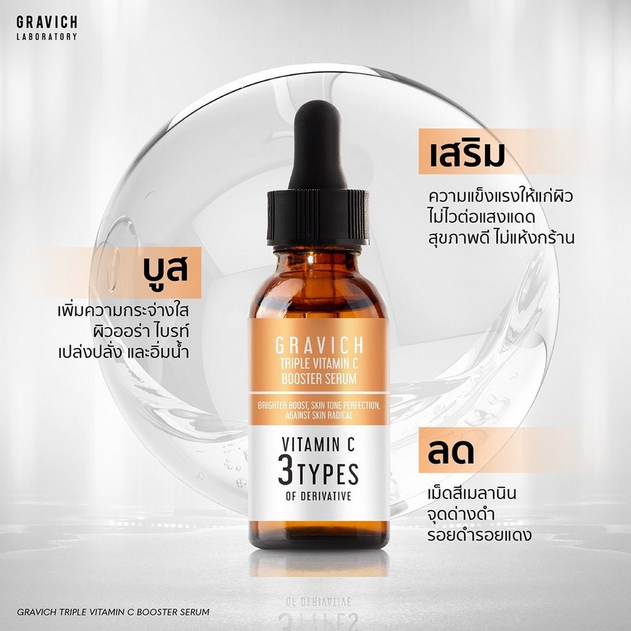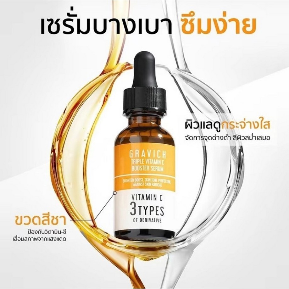 Gravich Triple Vitamin C Booster Serum 30 ml เซรั่มวิตามินซี ผิวกระจ่างใส ลดความหมองคล้ำ EXP2026