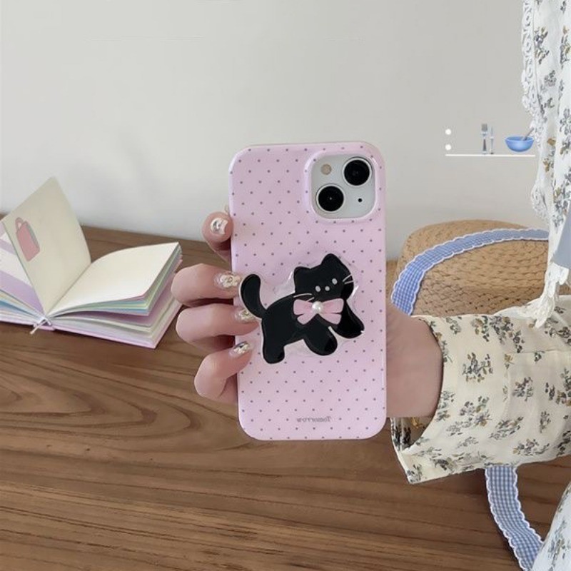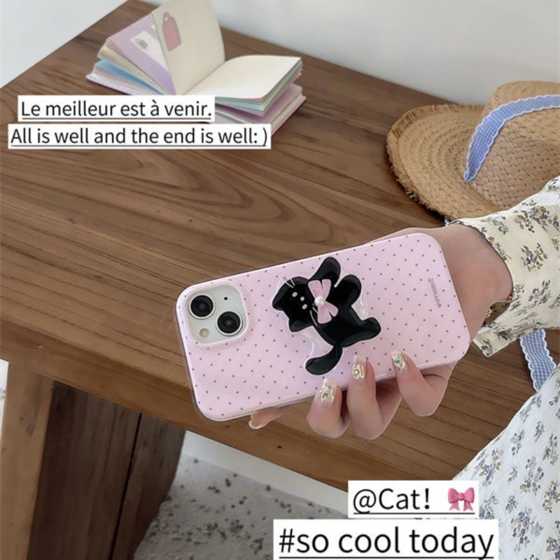 Iphone 16 15 14 13 12 11 Pro Max X Xr Xs Max 7 8 Plus SE2020 เคสโทรศัพท์น่ารัก Pearl Cat + Stand Soft Cover