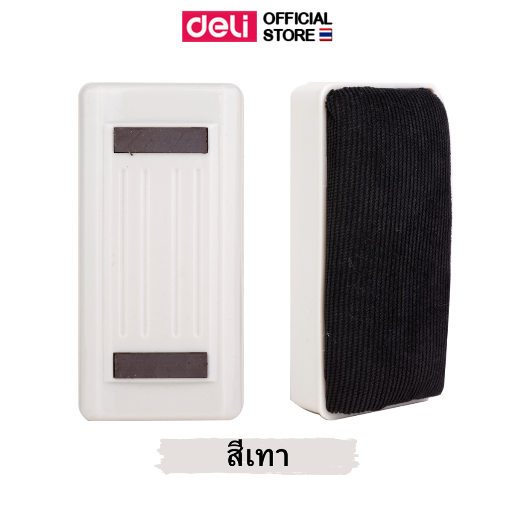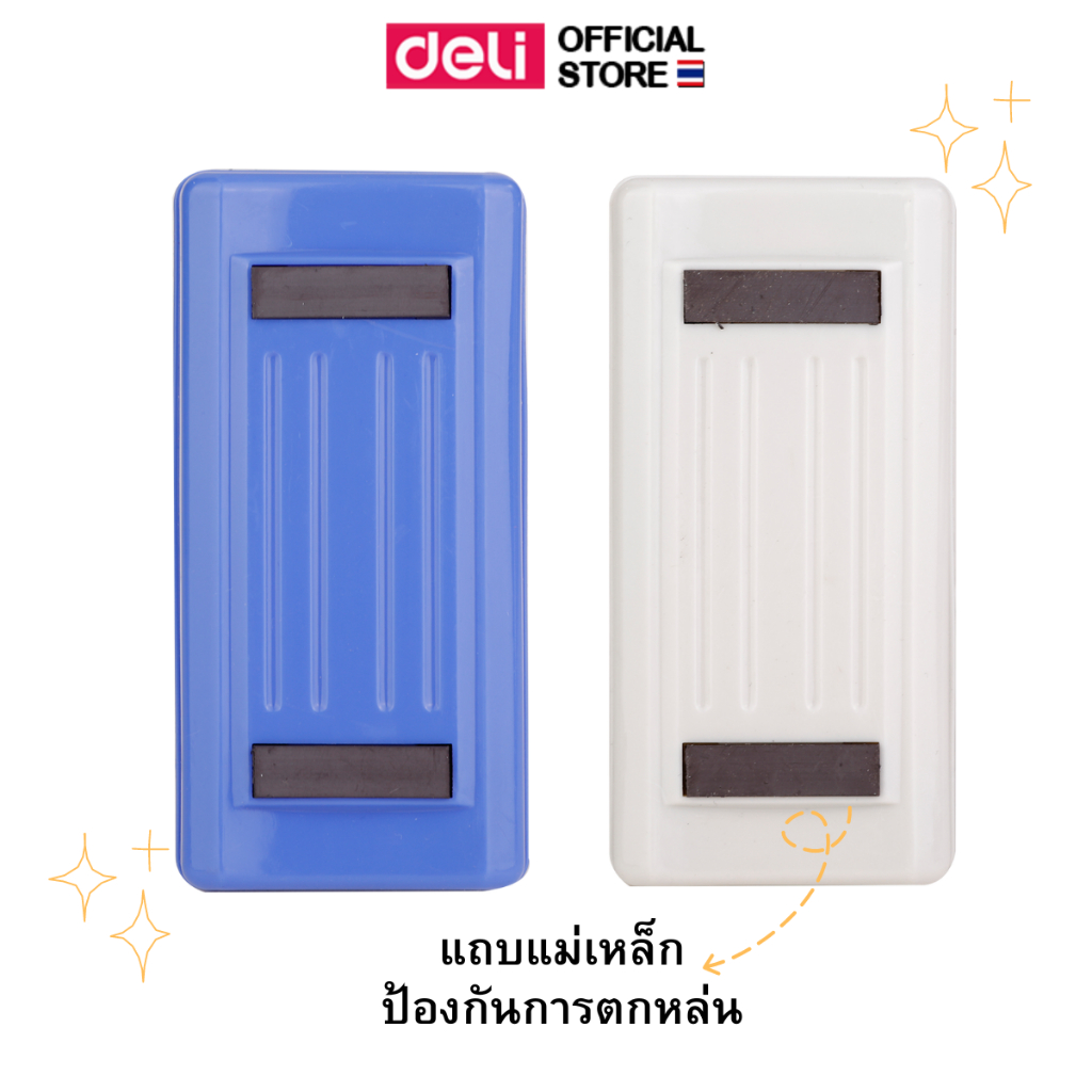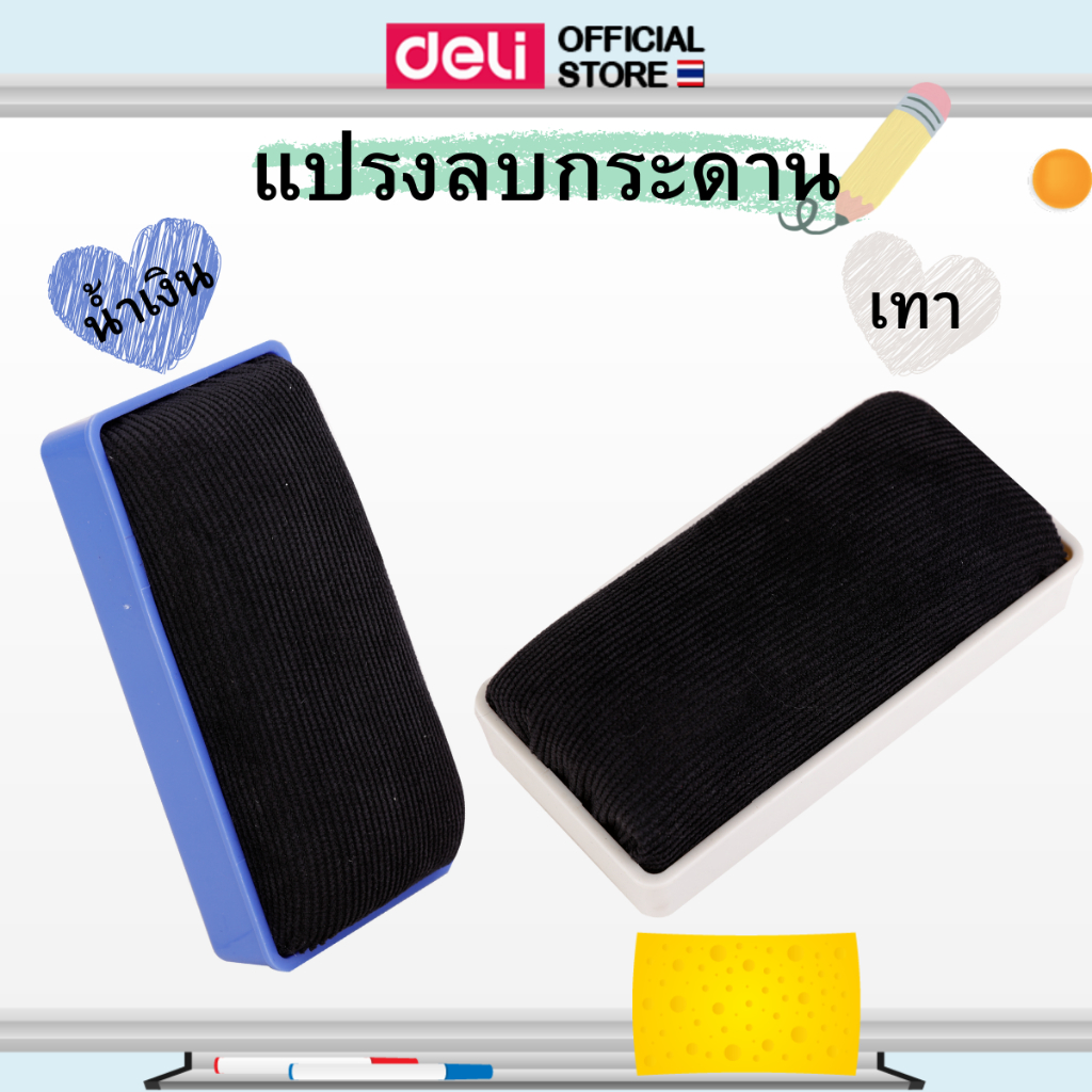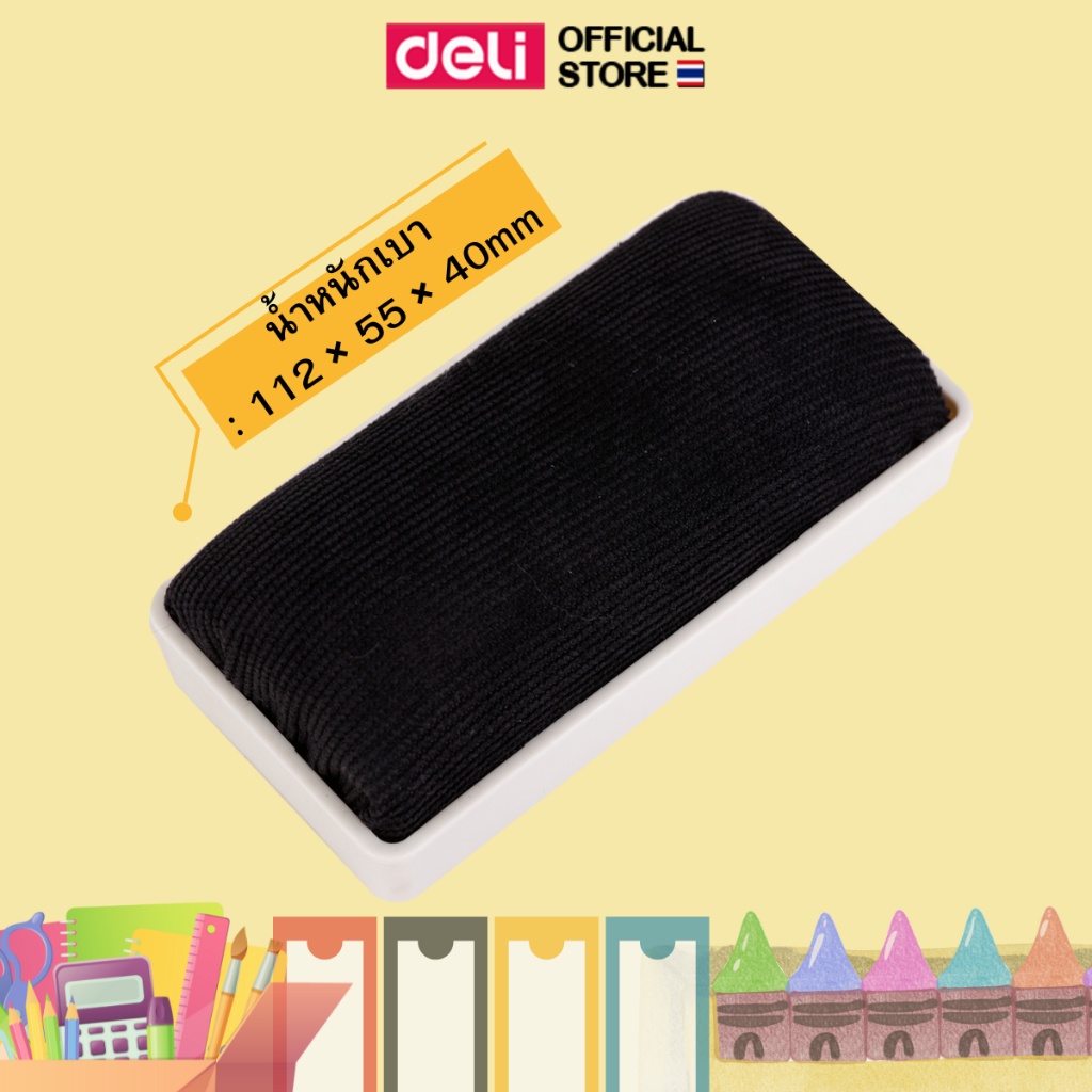 E7837 Deli แปรงลบกระดาน แปรงลบกระดานไวท์บอร์ด แม่เหล็ก ด้ามพลาสติก กระดานไวท์บอร์ด เครื่องเขียน แปรงลบแม่เหล็ก คละสี 1 ชิ้น ใช้สำหรับลบหมึกปากกาไวท์บอร์ด ด้านลบทำจากผ้าชนิดพิเศษ สามารถจัดเก็บผงหมึกได้ง่าย ด้านในมีฟองน้ำและโฟมชนิดนิ่ม ทำให้ไม่เป็นรอยบนกระดาน น้ำหนักเบา ใช้งานสะดวก ขนาด 112×55×4