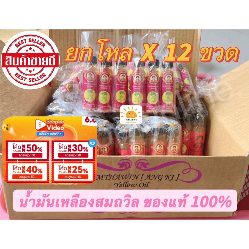 ลด50%ในLive&Video (ยกโหล 12 ขวด)น้ำมันเหลืองสมถวิล (อั้งกี้) ตราต้นโพธิ์ ของดีจาก จ.ตราด ขวดใหญ่ 24 ml. ของแท้100%