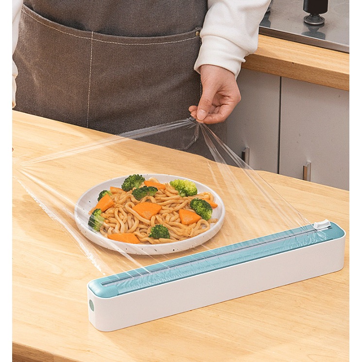 ที่ตัดแผ่นแร็พอาหาร ห้องครัวเครื่องตัดฟิล์มพร้อมแผ่นดูดแม่เหล็ก อุปกรณ์ในครัวที่ใส่แผ่นซีน แร็พอาหารซีนอาหาร