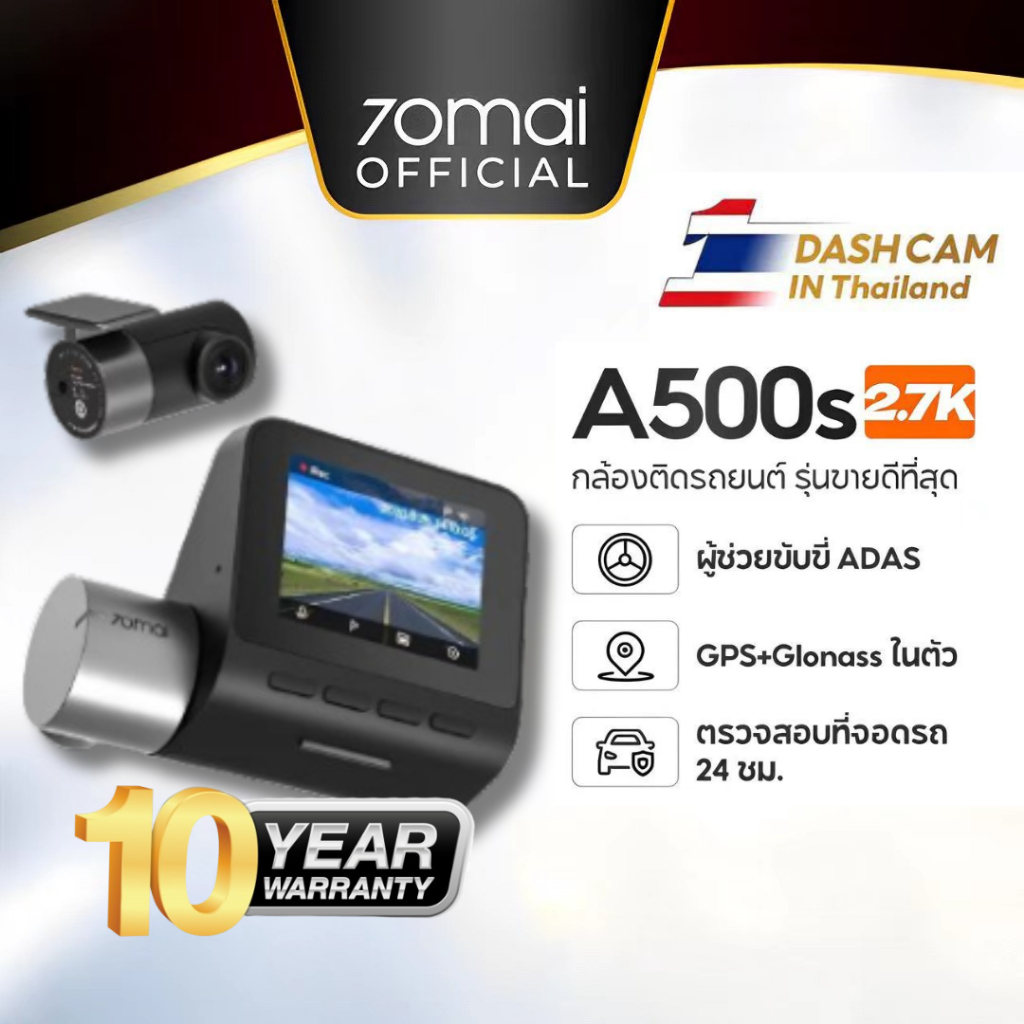... เทศไทย • 【GPS ในตัว + Glonass 】สะดวกในการใช้งานและตรวจเช็คพื้นที่ตำแหน่ง • 【ความละเอียด1944P พร้อม FOV 140° 】ด้วยเซ็นเซอร์ Sony IMX335 ขนาด 5 เมกะพิกเซล บันทึกวิดีโอ 1944P ซึ่งจับภาพทุกรายละเอียดที่สำคัญได้อย่างชัดเจนทั้งในกลางวันและกลางคืน • 【ระบบ ADAS】ช่วยเหลือคุณในขณะขับขี่ด้วยระบบเตือนการออกนอกเลนและระบบแจ้งเตือนการชนทางด้านหน้าที่ช่วยให้คุณหลีกเลี่ยงการเกิดอุบัติเหตุขณะขับขี่ • 【บันทึก 24 ชั่วโมงพร้อมG-sensor】สามารถบันทึกภาพขณะจอดรถ โหมดจอดรถจะเปิดใช้งานโดยอัตโนมัติ (ต้องซื้ออุปกรณ์เสริมแยกต่างหาก) • 【Stunning Shots Day & Night】พร้อมรูรับแสง F1.8 ช่วยเพิ่มการมองเห็นในตอนกลางคืนได้อย่างมากและได้ภาพที่คมชัดและแม่นยำของสีทั้งในกลางวัน / กลางคืน ช่วยให้รับแสงได้มากขึ้นเพื่อเพิ่มความสว่างในสภาพแวดล้อมที่มืดมากได้เป็นอย่างดี ## รายละเอียดสินค้า A500s เป็นเฉพาะกล้องหน้า A500s-1SET (A500 S+RC06) เป็นกล้องหน้าพร้อมกล้องหลังRC06 การเข้าถึงในแอป & แชร์ทันทีผ่าน Wi-Fi แบบเรียลไทม์ Time-lapse Recording การบันทึกแบบวนซ้ำและการป้องกันหลักฐาน วนซ้ำและเก็บไว้ในการ์ดหน่วยความจำ Micro SD ปลอดภัยจากการเขียนทับ A500S: OTA on October 15, 1.0.14 WW, update details are as following: 1. Added front camera recording time-lapse photography 2. Added the watermark switch option 3. Add an electronic label. ## สำหรับยี่ห้อสินค้า • ยี่ห้อ: • รุ่น: A500s • ความละเอียดวิดีโอ: SONY IMX335 1944P • รูรับแสง: F1.8 • FOV: 140° • อินพุต: 5V 2A • แหล่งจ่ายไฟ: ที่จุดบุหรี่ในรถยนต์ • ความจุของแบตเตอรี่: 500mAh • อุณหภูมิในการทำงาน: -10°C ถึง 60°C ## อุปกรณ์ในกล่อง • Pro Plus Dash Cam A500s x1 • RC11 x1 (ถ้าสั่งเป็นชุด) • สายไฟ 3.5เมตร x1 • ที่ชาร์จแบตในรถ x1 • สติ๊กเกอร์ไฟฟ้าสถิต x1 • สติ๊กเกอร์กาว x1 • หนังสือคู่มือ x1 รบกวนลูกค้าอ่านรายละเอียดด้านล่างให้เข้าใจก่อนสั่งซื้อสินค้านะคะ -️เงื่อนไขการรับประกัน 1.สินค้าของแท้ 100% รับประกันศูนย์ไทย 1ปี /เมมโมรี่การด์รับประกัน 6 เดือน * เงื่อนไขการรับประกัน บางกรณีอาจมีค่าใช้จ่ายเพิ่มเติมค่ะ 2.กรณีสั่งสินค้าผิดรุ่น ผิดสี ทางร้านขอสงวนสิทธิ์ไม่รับเปลี่ยนหรือคืนสินค้า รบกวนตรวจสอบให้ถี่ถ้วนก่อนกดสั่งนะคะ 3.กรณีเครื่องมี รอยตำหนิ / หน้าจอแตก / ตัวเครื่องมีรอยบุบ / แตก ต้องแจ้งภายใน 24 ชม. ** พร้อมภาพถ่าย วิดีโอตอนแกะกล่องสินค้า ** หากไม่มีหลักฐาน ข้อมูลตามที่ทางร้านแจ้งไปข้างต้น ทางร้านขอสงวนสิทธิ์ในการ เคลมสินค้า/เปลี่ยนสินค้าใหม่ ทุกกรณีค่ะ !! 4.กรณีใส่ที่อยู่ผิด ทางร้านไม่สามารถแก้ไขให้ได้ ลูกค้าต้องยกเลิกแล้วสั่งสินค้าเข้ามาใหม่ 5.ผู้ซื้อต้องแสดงรายละเอียดการสั่งซื้อและเลข SN ของสินค้า หากข้อมูลไม่ครบถ้วน ทางร้านขอสงวนสิทธิ์ ถือเป็นที่สิ้นสุดการรับประกันสินค้า **การประกันสินค้า