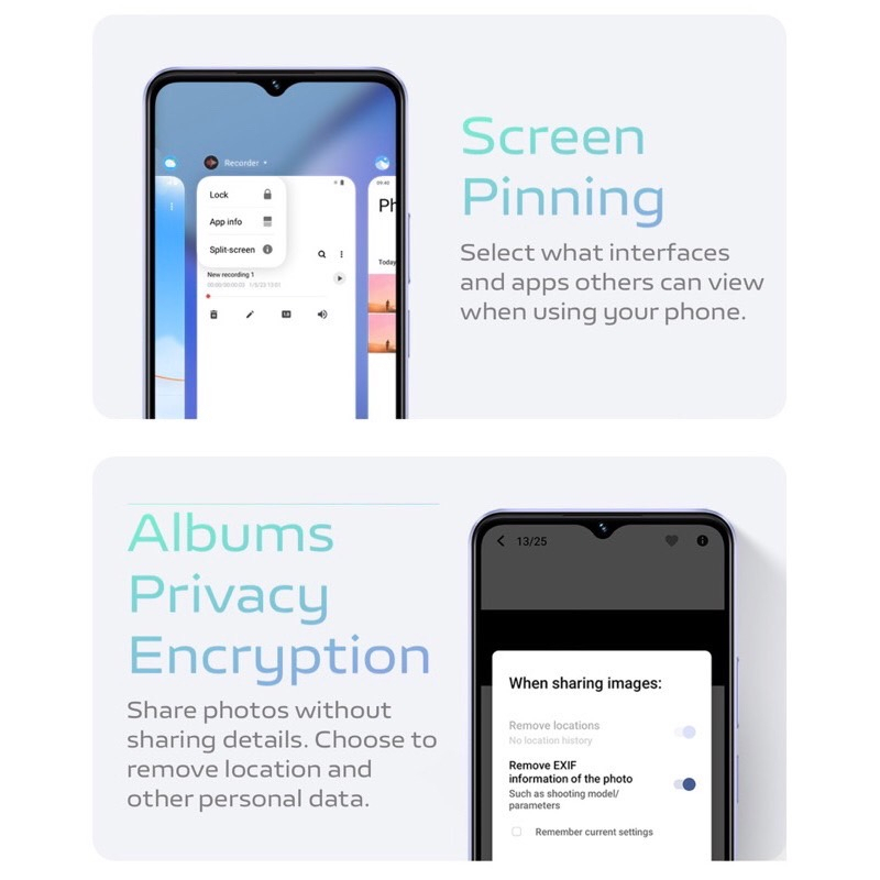 ... ขนาด 6.58 นิ้ว, 104.3 ซม.2 (~84.1% รองรับหน้าจอต่อได้) 1080 x 2408 ห้องน้ำ 20:9 ( ~401 ppi) ระบบปฏิบัติการแพลตฟอร์ม Android 13, Funtouch 13 ชุด Mediatek Dimensity 700 (7 นาโนเมตร) ซีพียู Octa-core (2x2.2 GHz Cortex-A76 และ 6x2.0 GHz Cortex-A55) จีพียูมาลี-G57 MC2 ตรวจสอบความคุ้นเคย microSDXC (ใช้เพิ่มความคุ้นเคยอีกครั้ง) RAM ภายใน 128GB 4GB, RAM 128GB 8GB กล้องหลัก Dual 50 MP, f/1.8, (กว้าง), 1/2.76", 0.64µm, PDAF 2 MP, f/2.4, (คืนนี้) มีแฟลช LED, HDR, ความทรงจำ วิดีโอ 1080p@30fps กล้องเซลฟี่เดี่ยว 16 MP, f/2.0, (กว้าง) วิดีโอ 1080p@30fps ฟังดูสิ แจ็ค 3.5 มม. ใช่ COMMS WLAN Wi-Fi 802.11 a/b/g/n/ac ดูอัลแบนด์ บลูทูธ 5.1, A2DP, LE ตำแหน่ง GPS, GLONASS, กาลิโอ, BDS, QZSS ไม่ใช่เอ็นเอฟซี วิทยุเอฟเอ็ม ยูเอสบียูเอสบี-C, OTG คุณสมบัติเพื่อตรวจสอบ (ติดตั้งระบบปฏิบัติการ), มาตรความเร่ง, ความพยายามของเรา, คำสั่ง ประเภทแบตเตอรี่ 5000 mAh ถอดไม่ได้ พบกับเครื่องชาร์จแบบมีสาย 18W MISC สีสีส้มชิมเมอร์เหมือนกับสีดำ