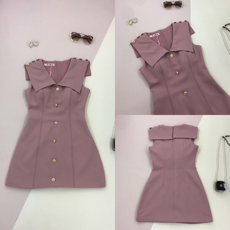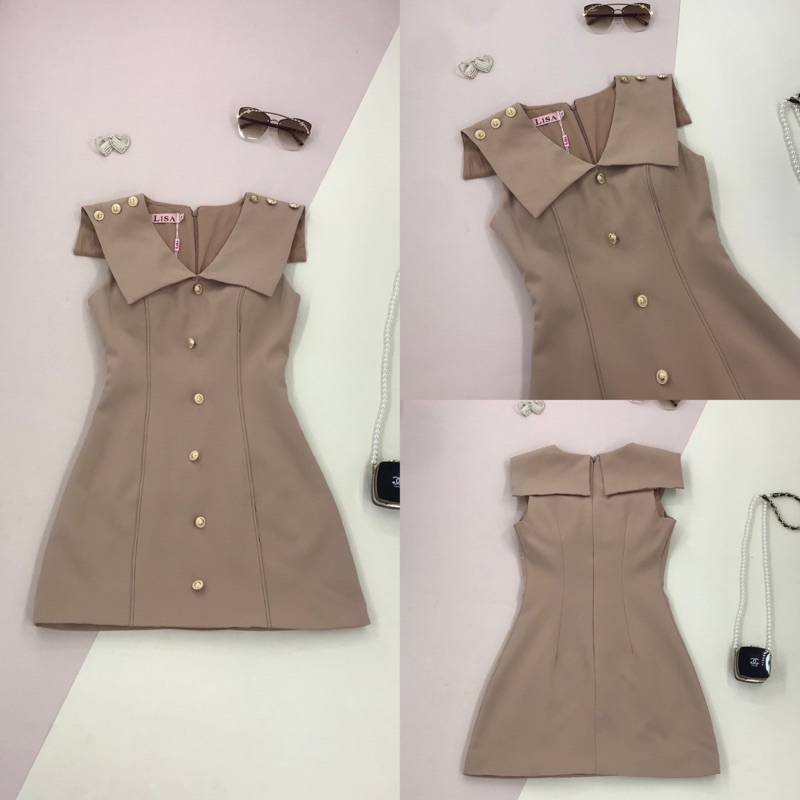 [LISA] A0392 ชุดเดรสกระโปรงแขนกุดคอปกใหญ่เดินด้ายแต่งกระดุมหน้า ทรงสวยเข้ารูป ใส่ออกงาน ใส่เที่ยว ทำงาน