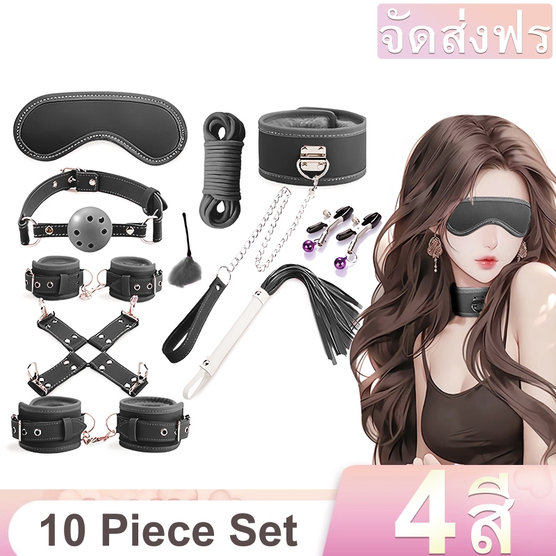 #Q79 ✅SM พวงกุญแจสายหนัง กุญแจมือ ที่หนีบจุกนม แก๊กปาก แก๊กบอล ปลอกคอ พันธนาการหญิง บทบาทสมมุติ ชุดพร็อพ ✅ชุด 10 ชิ้น✅