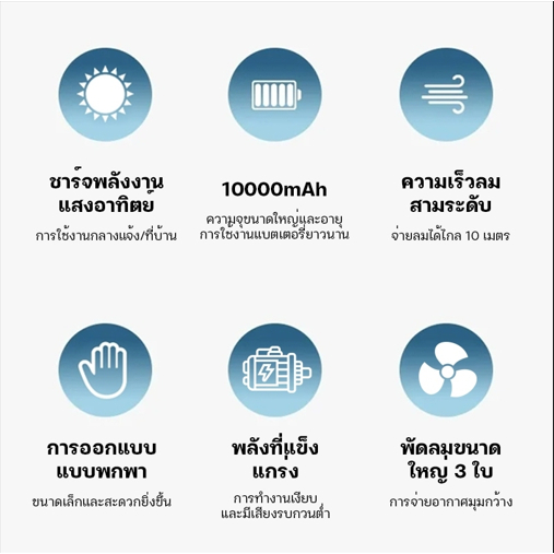 ... ราคารวมภาษีมูลค่าเพิ่มแล้ว✅ 💵This price is inclusive of VAT.✅ 🔔ต้องการออกใบกำกับภาษี กรุณาแจ้งรายละเอียดในหมายเหตุให้ครบถ้วนทุกครั้งนะคะ🔔 🔔want to issue a tax invoice Please provide complete details in the remarks every time.🔔 💡รายละเอียดสินค้า ****** เนื่องจากสินค้ามีขนาดใหญ่ห้ามสั่งเกินครั้งละ 1 ชิ้น ******* ยี่ห้อ (Brand) :XTON SOLAR FAN พัดลมพลังงานแสงอาทิตย์ 5 ใบพัด ที่เงียบไม่มีเสียงรบกวน - ขนาด14 นิ้ว - สามารถปรับความแรงลมได้ 3 ระดับ - ใช้งานได้ทุกที่เพราะไม่ต้องเสียบปลั๊กไม่ต้องเสียค่าไฟ - ที่เงียบไม่มีเสียงรบกวน - ประหยัดไฟ - สามารถชาร์จแบตเตอรี่ในพัดลมผ่านแผงโซลาร์เซลล์ ด้วยแบตเตอรี่ คุณภาพสูง - สามารถเปิดพัดลมได้ยาวนานถึง 7 ชั่วโมง - สามารถปรับความแรงลมได้ 5ระดับ - มีช่องเสียบ USB ให้คุณสามารถชาร์จมือถือหรืออุปกรณ์ไฟฟ้าผ่านแบตเตอรี่ในตัวพัดลม - มาพร้อม Adaptor USB ให้คุณสามารถชาร์จแบตเตอรี่ผ่านUSB หรือไฟบ้าน 220Vได้กรณีไม่มีแสงแดด - ใช้งานง่าย ขนย้ายสะดวก - Blades : 3 blades - Power : 5V 8W - Blades Size : 12” - Solar Panel : 6V 12w Polysilicon - Solar Panel Size(mm.) : 350x290x17 - Battery : 6pcsx3.7V 18650 2000mAh Lithium Ion - Fan Speed : 5 steps - Recharge Time : 3-5 hours - Runtime : 3-7 hours - Wire Length : 5 m. - Dimension (w x l xh :mm.) : 420x190x390 - Weight (g) : Fan : 2120 - Solar Panel : 1000 - Package size (pieces : mm.) : 1pc : 390x250x370 **📢📢การใช้งานของพัดลม SOLAR 📢📢** 1.ควรนำไปชาร์จไฟบ้านก่อน4ชั่วโมงครั้งแรก หลักจากเปิดการใช้งานก่อนทุกครั้ง 2.หลังจากที่ชาร์จไฟบ้านแล้ว ครั้งต่อไปชาร์จโดยการตากแดด เพื่อลดการเสียได้ 90% 🚛จัดส่งสินค้า วันจันทร์ - วันเสาร์ (ร้านหยุดวันอาทิตย์)🚛 🔔อ่านก่อนสั่งนะคะ🔔 ✅ลูกค้า "สามารถ" เปลี่ยนสินค้า ตามกรณีดังต่อไปนี้ 1. ทางบริษัทจัดส่งสินค้าผิดรุ่น ,สี หรือขนาด ให้กับลูกค้า 2. ทางบริษัทจัดส่งสินค้าที่มีลักษณะแตกต่างอย่างชัดเจน หรือไม่มีส่วนคล้ายคลึงกับรูปภาพของสินค้าที่ได้แสดงไว้ในหน้ารายละเอียดสินค้า 3. สินค้ามีสภาพชำรุด เสียหาย หรือไม่สามารถใช้งานได้ตั้งแต่ได้รับสินค้าให้กับลูกค้า 4. สินค้าที่ชำรุดต้องมีอาการที่อยู่ในเงื่อนไขการรับประกัน และมีสภาพตามที่กำหนด 5. ลูกค้าสามารถขอเปลี่ยนสินค้าเนื่องจากข้อ 1,2 โดยลูกค้าจะต้องทำการจัดส่งสินค้ากลับมายังบริษัทฯภายใน 3 วันหลังจากที่ได้รับสินค้า โดยที่สินค้าที่ลูกค้าต้องการเปลี่ยนจะต้องอยู่ในสภาพสมบูรณ์ 100% ไม่ชำรุดเสียหายจากการใช้งาน สภาพสินค้าต้องไม่เกิดการเปลี่ยนแปลงใดๆ รวมถึงป้ายราคา ป้ายยี่ห้อสินค้า เอกสารคู่มือต่างๆ ยังคงอยู่ และบรรจุ ในหีบห่อบรรจุภัณฑ์ของสินค้านั้นๆ ในสภาพเดียวกันกับสภาพที่บริษัทฯ นำส่งต่อลูกค้า 6. ในกรณีที่สินค้าเกิดการชำรุด ทางบริษัทฯ จะใช้เวลาตรวจสอบสินค้า ใน 2-3 วันทำการ (โดยประมาณ) หลังจากวันที่ได้รับสินค้าคืนจากลูกค้า (ยกเว้นติดวันห