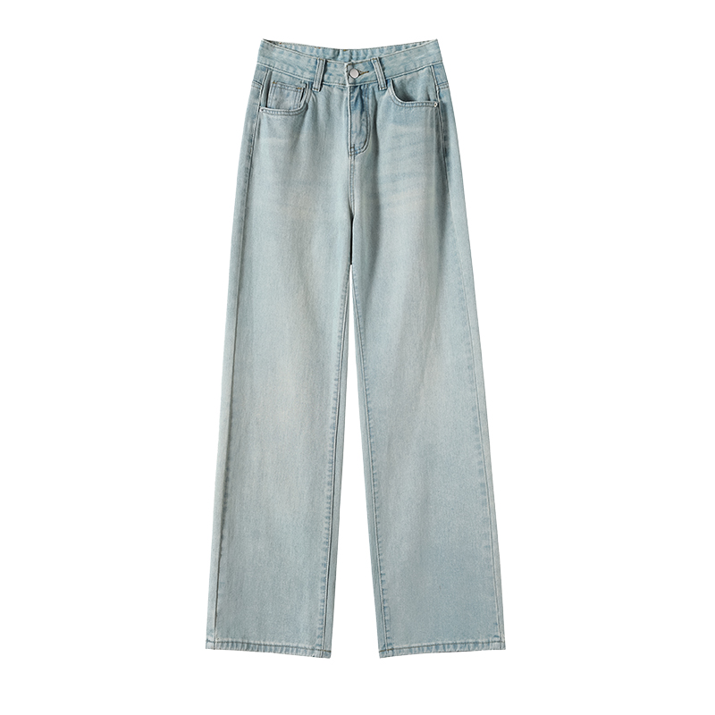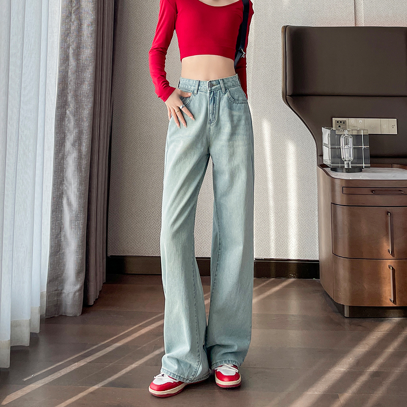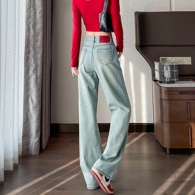 ความรู้สึกในการออกแบบที่สมจริงกางเกงยีนส์ขากว้างสีอ่อนในกระเป๋าหลังเอวสูงแบบใหม่ของผู้หญิงทรงหลวมขาตรงกระชับสัดส่วนกางเกงความยาวพื้น เลือกขนาดตามน้ำหนัก S (40~47.5 กก.), M (47.5~52.5 กก.), L (52.5~60 กก.), XL (60~67.5 กก.), 2XL (67.5~75 กก.)
