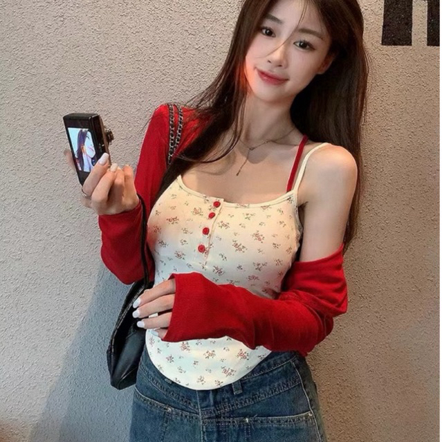 เสื้อสายเดี่ยว ลายดอก งานมาใหม่ มีฟองน้ำในตัว พร้อมส่งในไทย น่ารักสไตล์เวียดนาม🤍🎀 ขนาดสินค้า ยาว 11 นิ้ว รอบอก 22-28 นิ้ว รอบแขน 22 นิ้ว