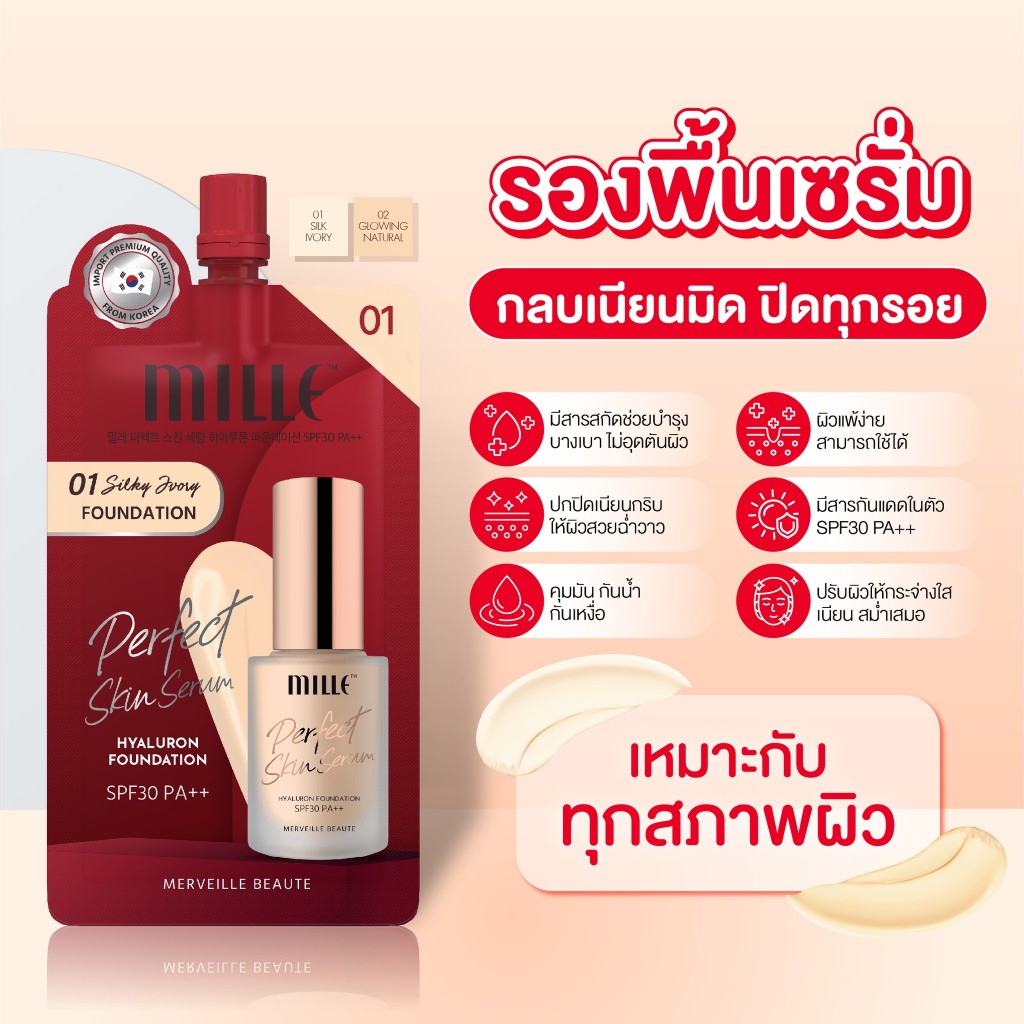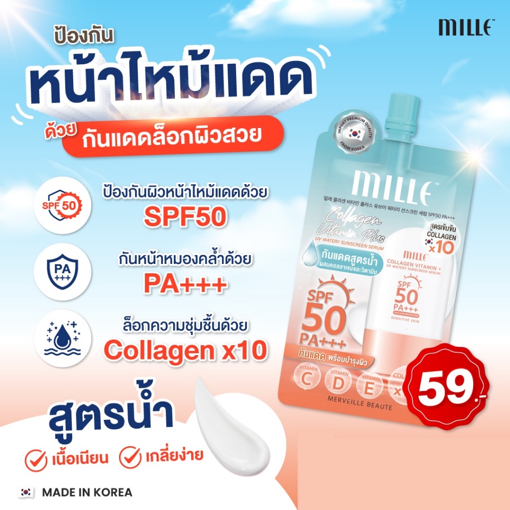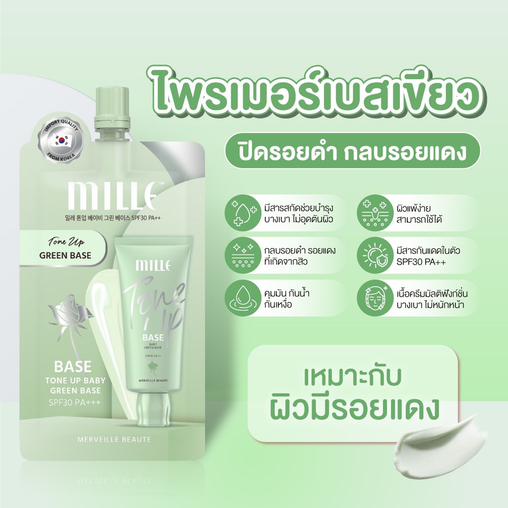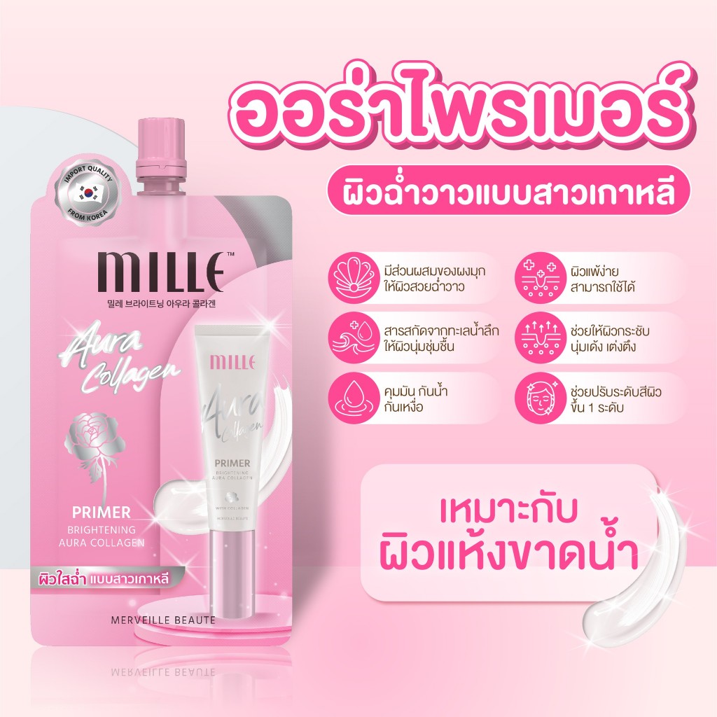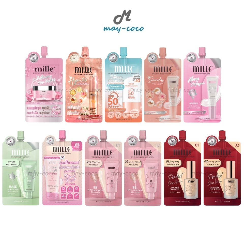 ถูก/แท้/มีไลฟ์ (ซอง) Mille มิลเล่ Sunscreen Primer BBCream Foundation กันแดด ไพรเมอร์ บีบีครีม รองพื้น ปกปิด เบลอผิว