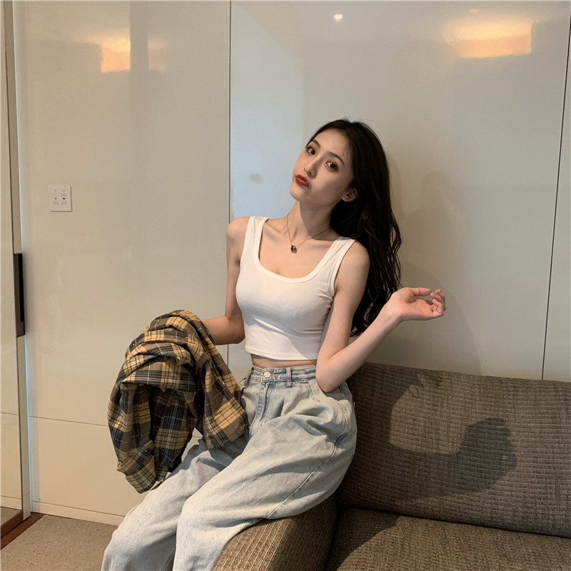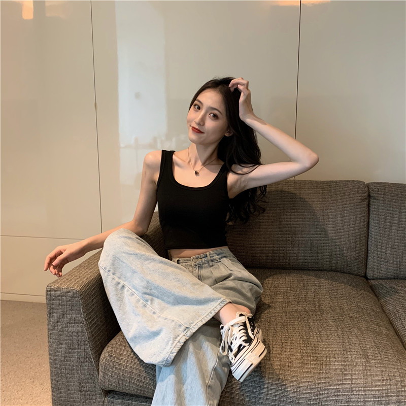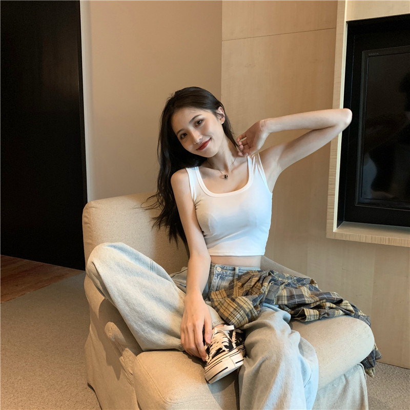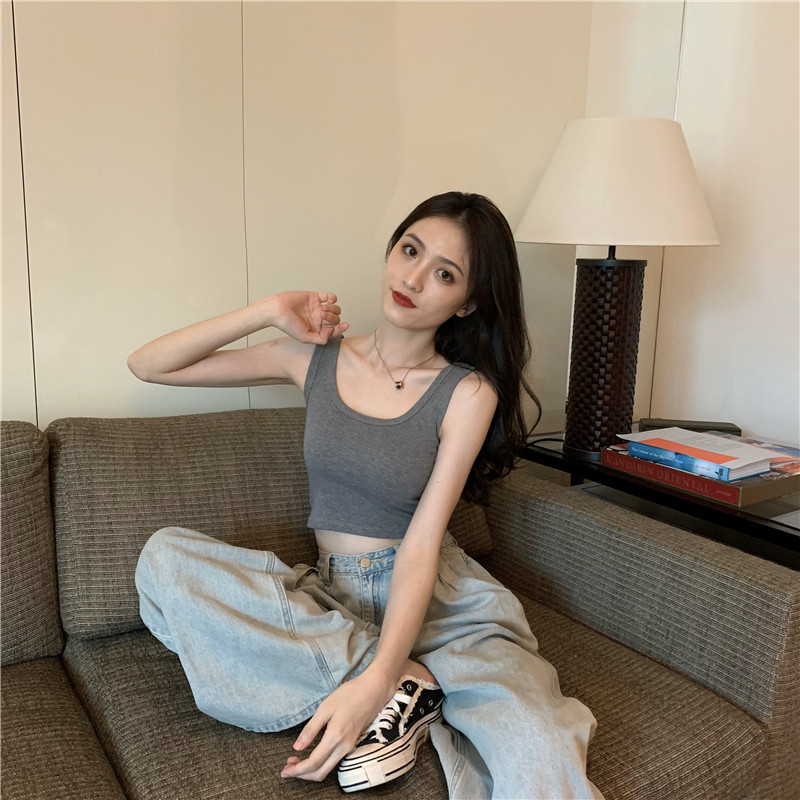 Hotgirl พร้อมส่ง✨เสื้อครอปผู้หญิง เสื้อกล้าม แฟชั่น สีพื้น กล้ามครอป สายเดี่ยว สไตล์เกาหลี ใส่เล่นโยคะ