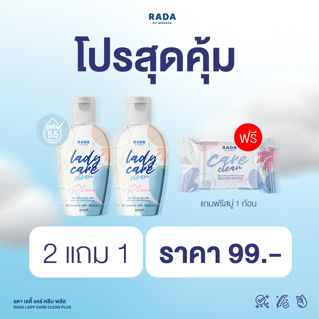 จ่าย 99บาท ได้ 3 ชิ้นเลือกของแถมได้ "ไม่ระบุชื่อสินค้า" (เลดี้แคร์พลัส 2 ขวด+สเปรย์รดา 1 ขวด หรือ สบู่รดา1ก้อน