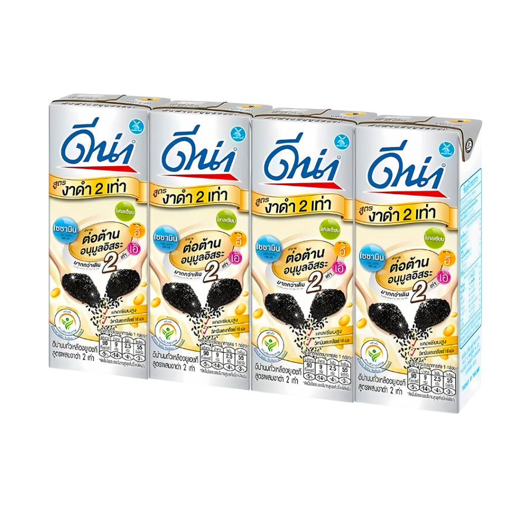 ... ือแร่รวม 16 ชนิด มีส่วนช่วยเสริมสร้างสุขภาพร่างกายแข็งแรง - ดีน่างาดำมีเซซามิน 1.26 มก. ต่อ 180 มล. - นมดีน่า ดื่มง่ายสบายท้อง เหมาะกับทุกเพศทุกวัย - ดูดีขึ้นได้อีกในแบบคุณเลือกดื่ม ดีน่า งาดำ - Plant Based โปรตีนจากพืช - ควรกินอาหารหลากหลายครบ 5 หมู่ ในสัดส่วนที่เหมาะสมเป็นประจำ
