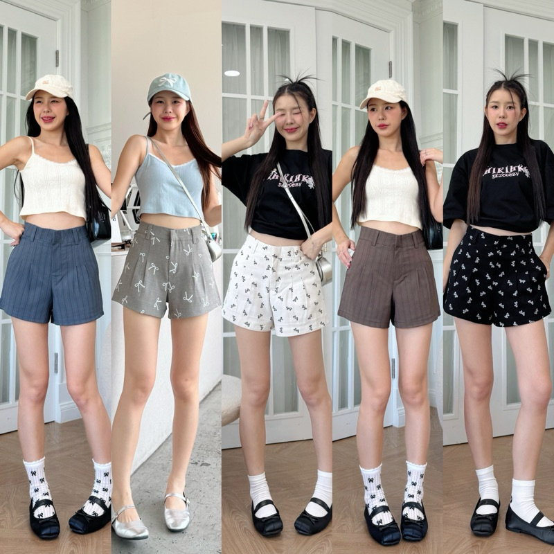 กางเกงขาสั้นลายริ้ว ลายโบว์ สุดน่ารัก งานผ้าสโนว์🎀🪞✨❤️