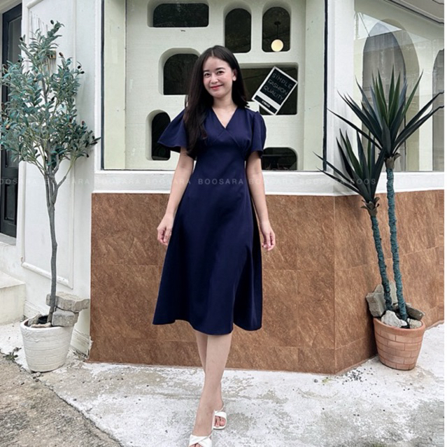 Timmy Dress 🐰👗 เดรสคอวีแต่งจีบช่วงอก ทรงสวยใส่ออกงาน ทำงานได้ - BSR C.