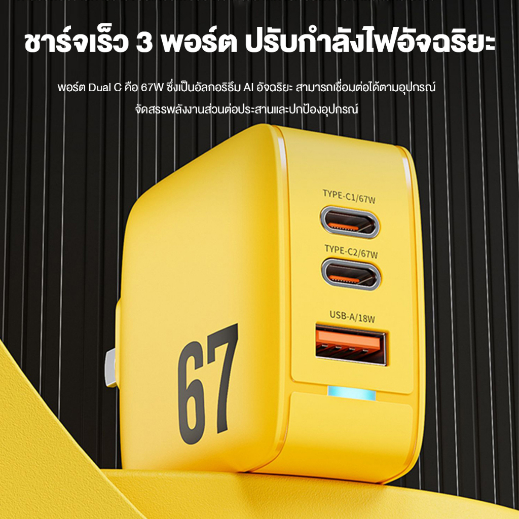 คุณได้รับ ของขวัญ 1 ชิ้น,สายซิลิโคนสำหรับมัดรวมสายชาร์จ,PD 67W หัวชาร์จเร็ว GAN สามารถพับชาร์จหัวชาร์จ QC 3.0 ชาร์จเร็วได้ 3 ช่องชาร์จไฟเร็วสําหรับ Type-C/IOS ทุกรุ่น
