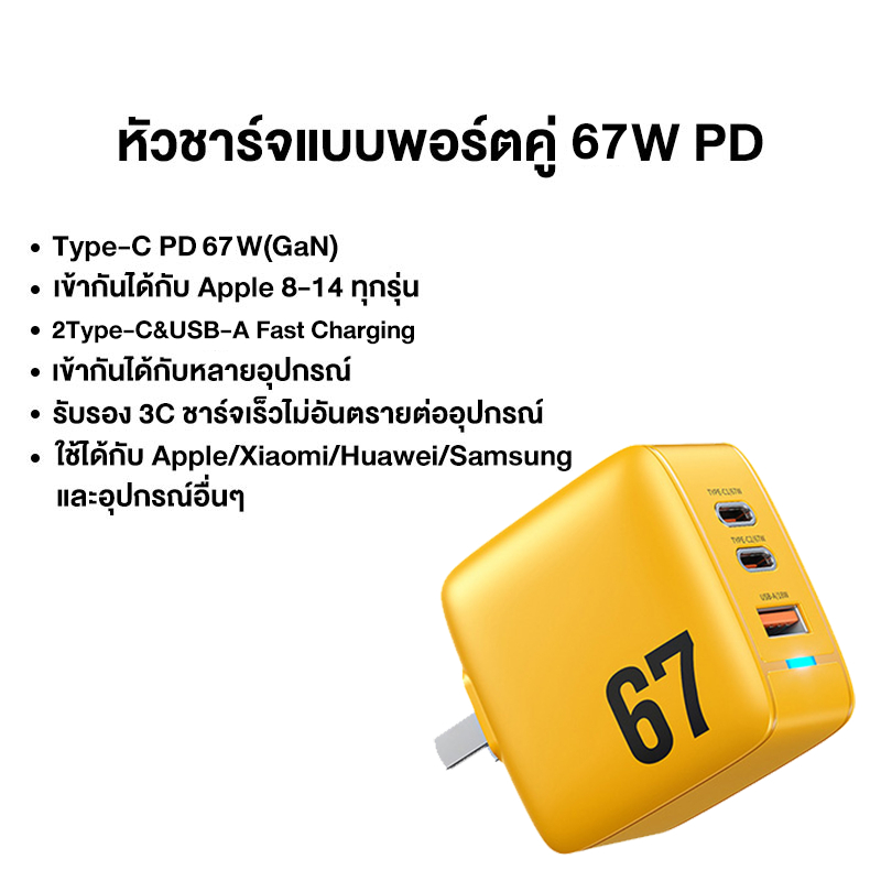 1. ชาร์จเร็วทั้ง 3 พอร์ต เลือกพอร์ตชาร์จได้ตามต้องการ. 2. ชาร์จเร็ว PD ปรับกระแสไฟอัตโนมัติตามอุปกรณ์ชาร์จระดับ 7. 3. รองรับพาวเวอร์ซัพพลายคู่ 67W PD. 4.GEN เทคโนโลยีชาร์จเร็วไม่ร้อน. 5. วัสดุระดับไพน์ ทนทานต่อการกัดกร่อน แข็งแรงทนทาน. 6. รองรับระบบชาร์จเร็วทั้งหมด (IOS/Android)