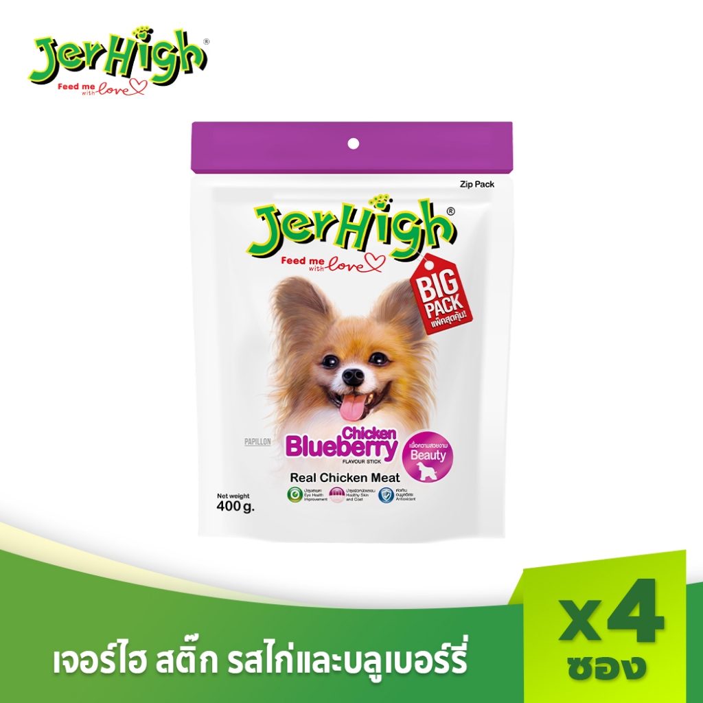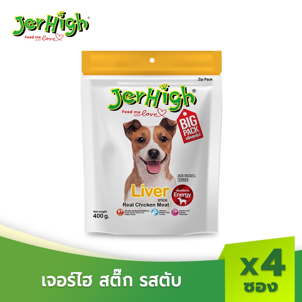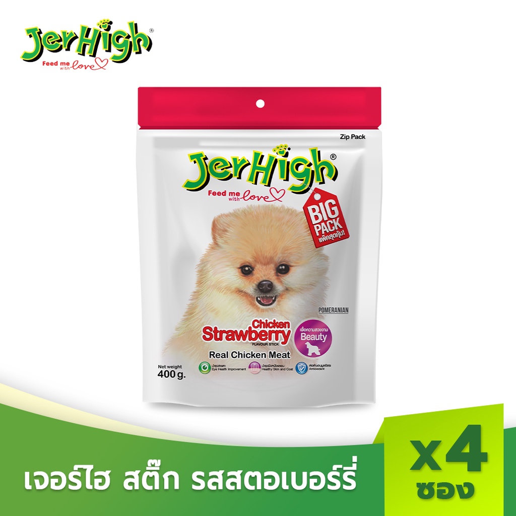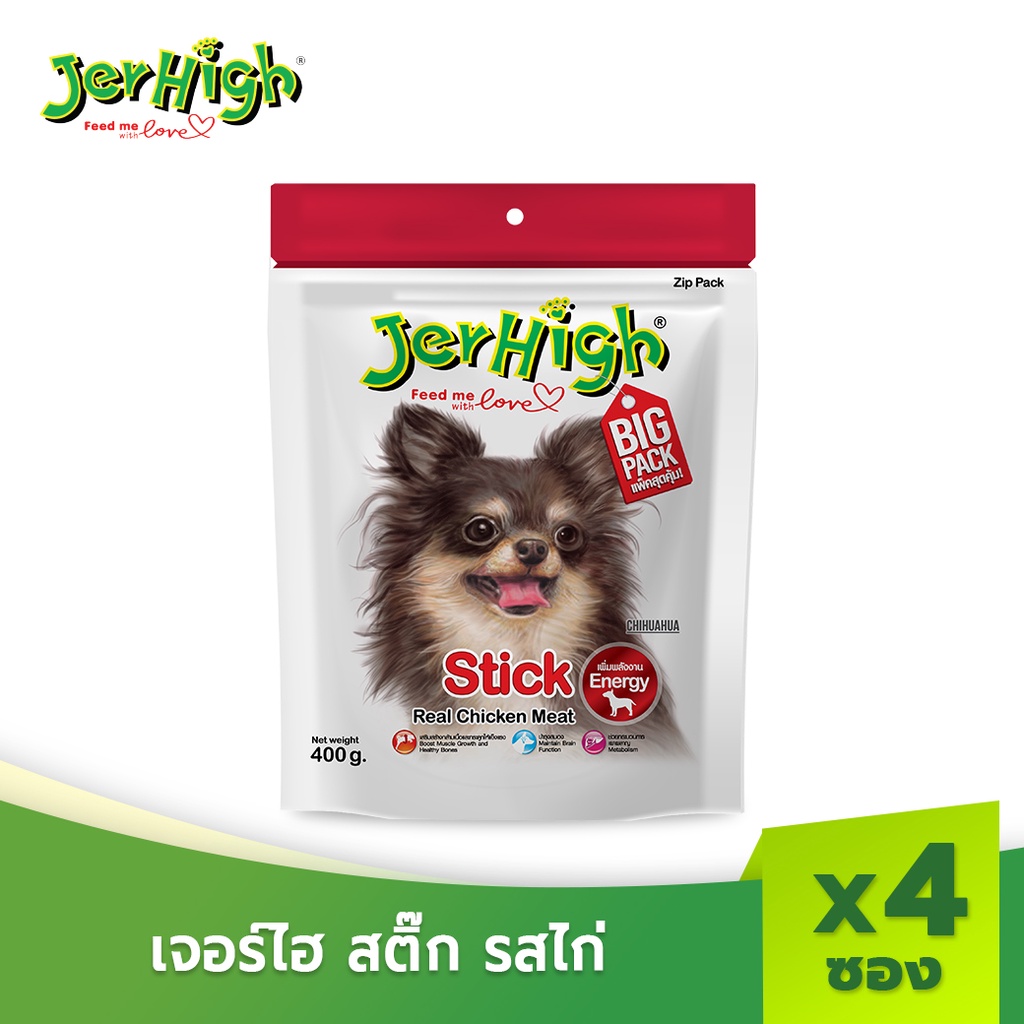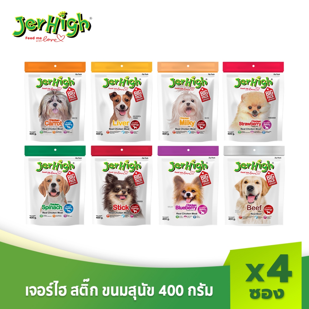 [แบรนด์ขายดีอันดับ 1]JerHigh เจอร์ไฮ สติ๊ก ขนมหมา ขนมสุนัข อาหารสุนัข 400 กรัม บรรจุ 4 ซอง