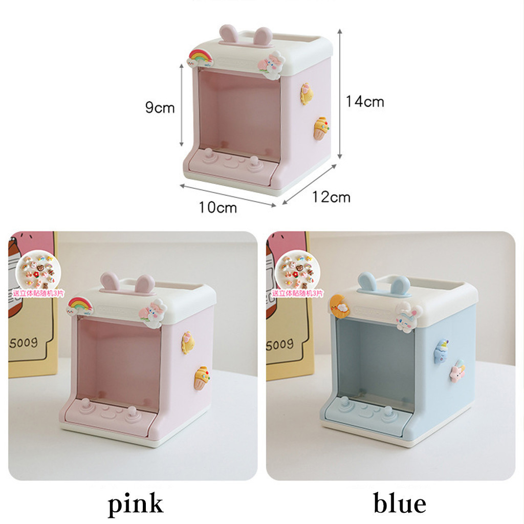 ✨รายละเอียดสินค้า ชื่อสินค้า : กล่องใส่ปากกา WJ-033 วัสดุ: PP สี : ชมพูครีม/ฟ้าครีม ขนาด: 10*12*14ซม 📦แพคเกจประกอบด้วย: -ที่ใส่ปากกาในรูปของตู้คีบตุ๊กตา*1 -สติ๊กเกอร์น่ารัก*1 📕คุณสมบัติ ✏- การจัดเก็บอเนกประสงค์:ที่วางปากกา,ยังสามารถจัดเก็บดินสอเขียนคิ้ว,ลิปสติก,แปรงแต่งหน้าและเครื่องสำอ