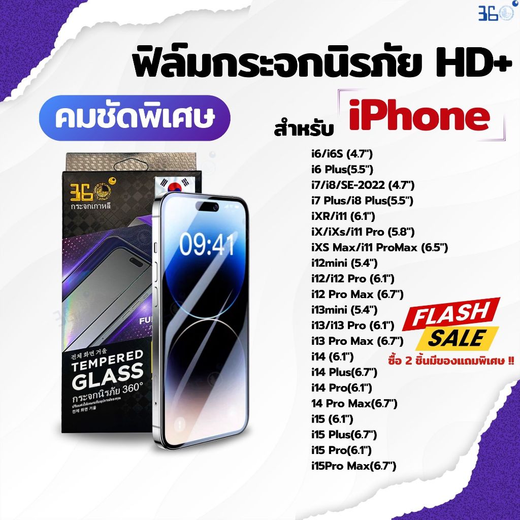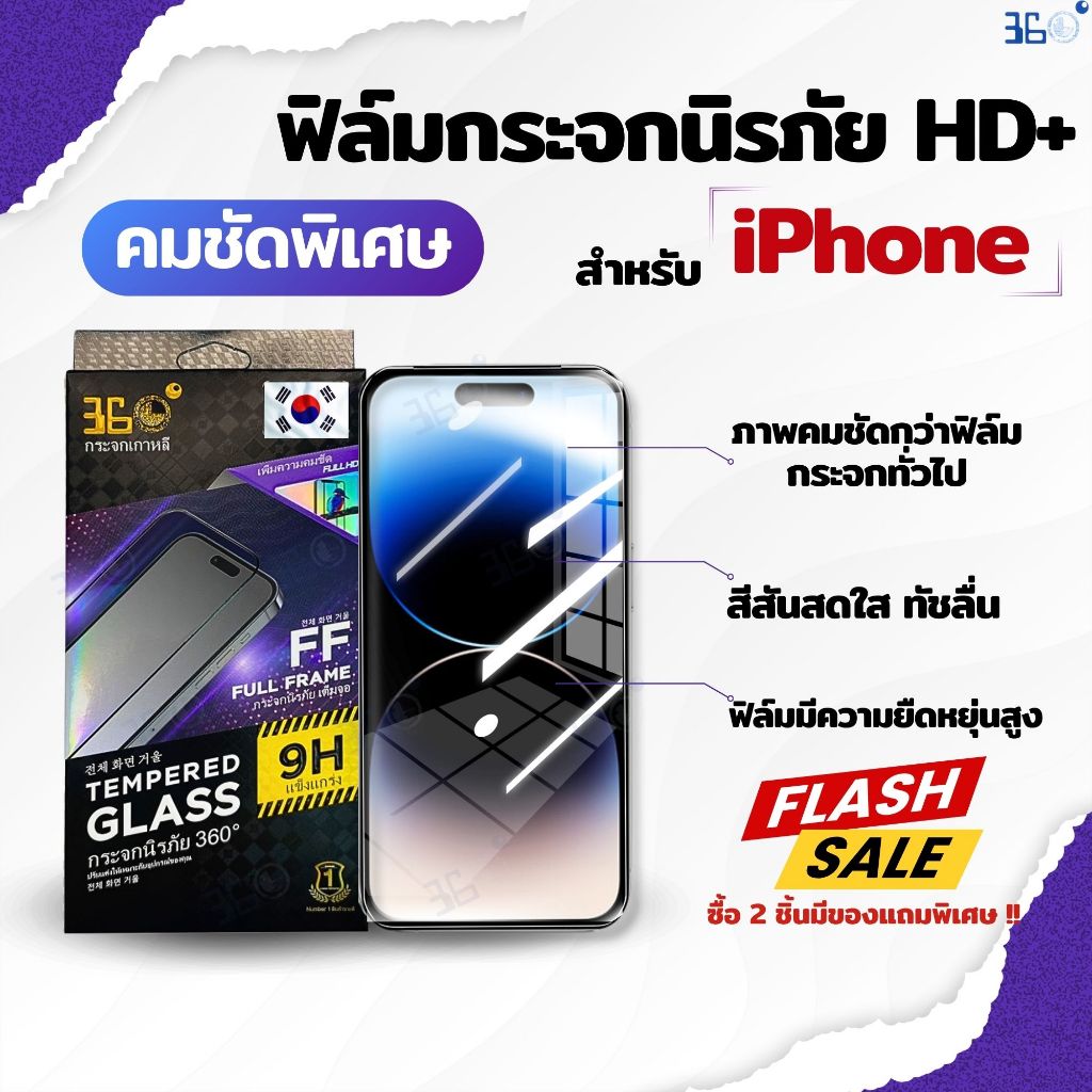 ฟิล์ม🇰🇷360° ฟิล์มกระจก IPhone กันรอย ใส HD+ นิรภัย เต็มจอ 16 11 13 15 14 12 Pro Plus Promax Max X Xr Xs Se 8 7 6 Mini
