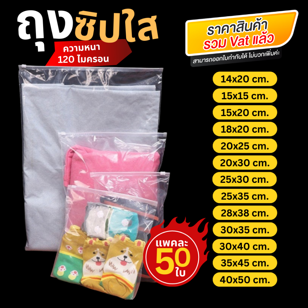 ถุงซิปใส (แพค 50 ใบ) เนื้อถุงแบบใส สำหรับแพคเสื้อผ้า และสิ่งของ คุณภาพดี เนื้อหนา อย่างดี