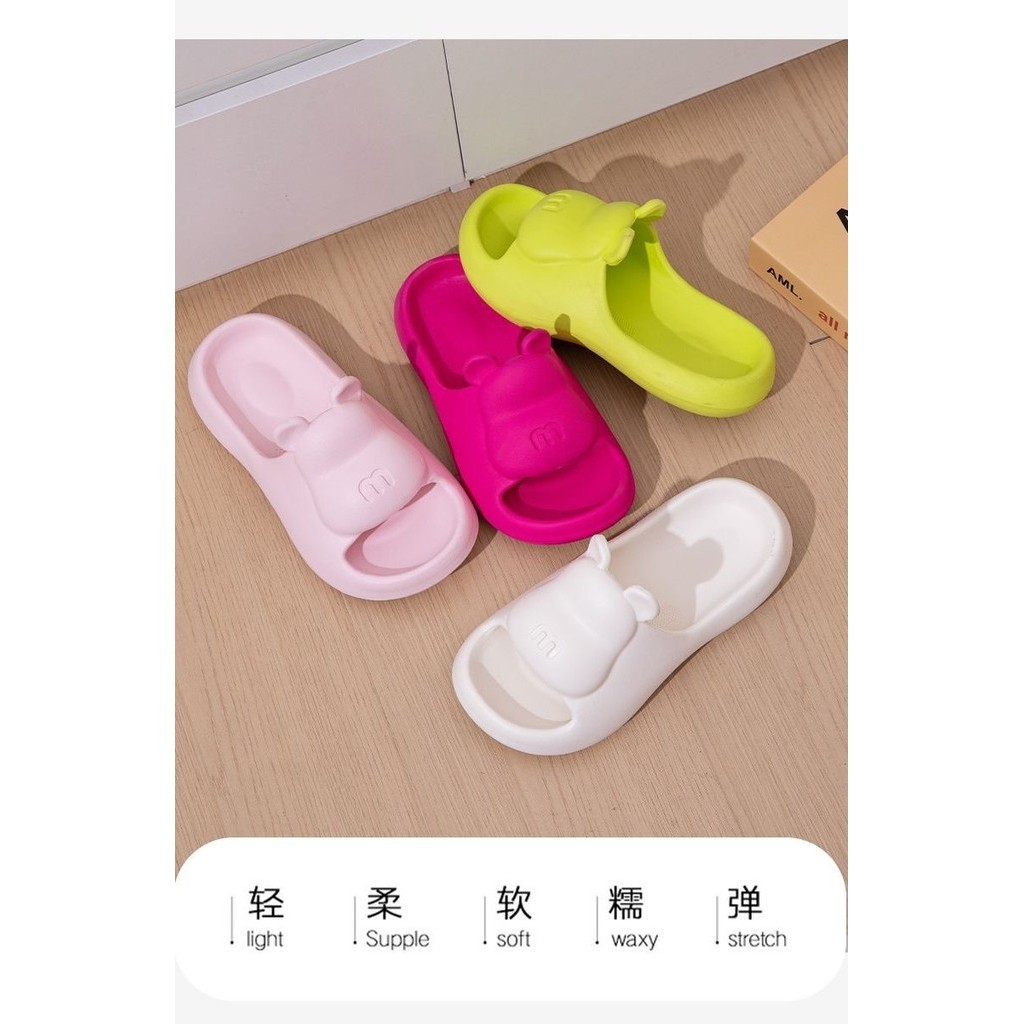 「DR」 รองเท้าแตะสีทึบรองเท้าแตะหมีอินเทรนด์แฟชั่นสบายระบายอากาศบ้านในร่มห้องน้ําอาบน้ําฤดูร้อนสไตล์ใหม่สบายๆทุกการแข่งขันกันลื่นสวมทนevaคู่ 36-45