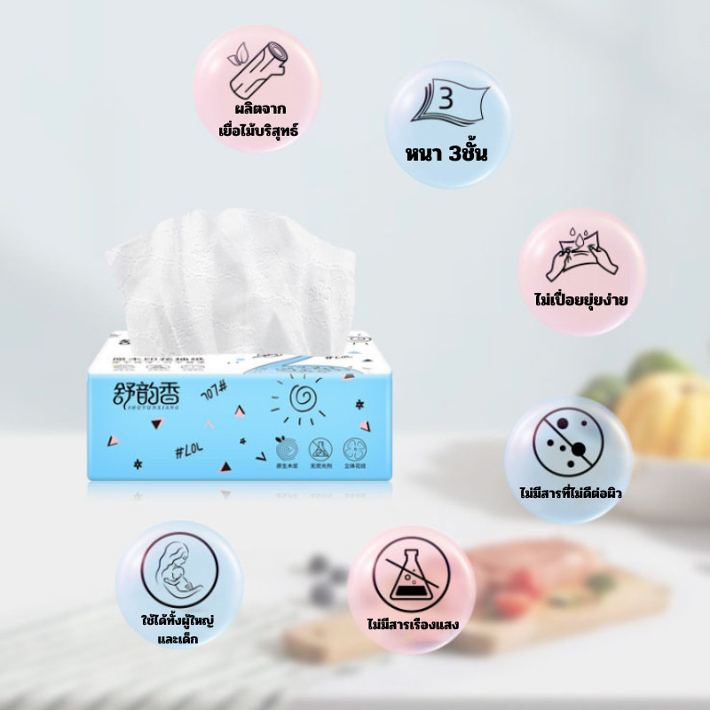 FM พร้อมส่ง กระดาษทิชชู่ เช็ดหน้าได้ ขนาดพกพา ไร้สารอันตราย ไม่มีสารเรืองแสง เเบบห่อ