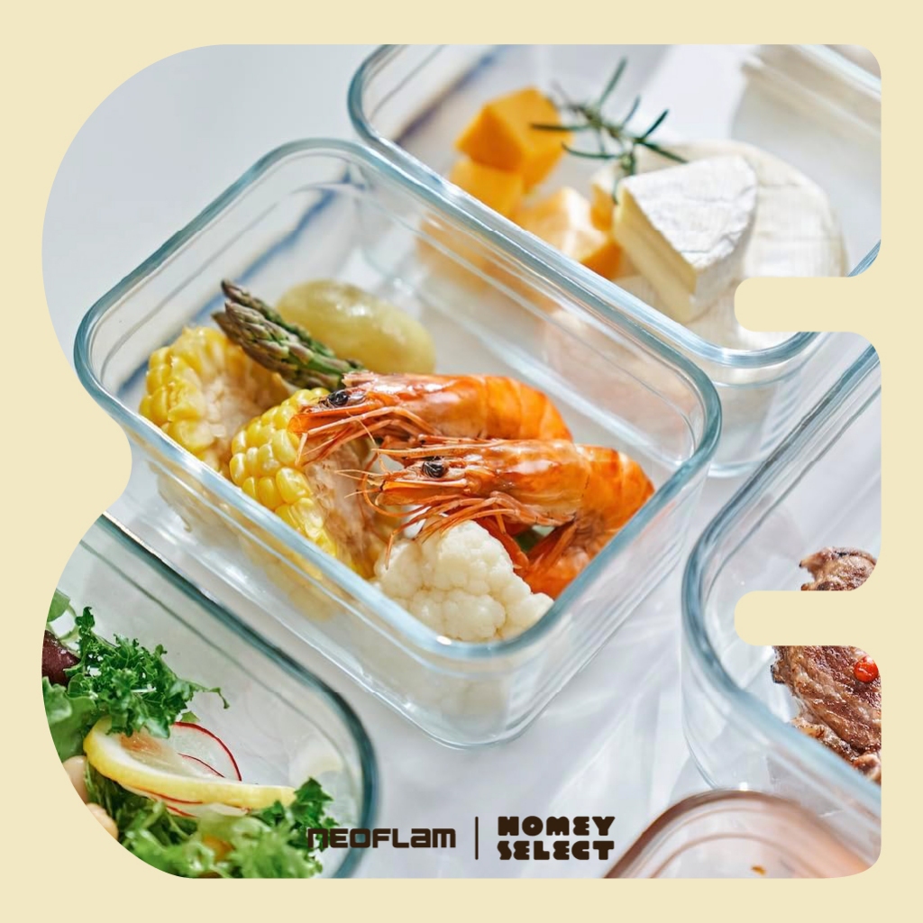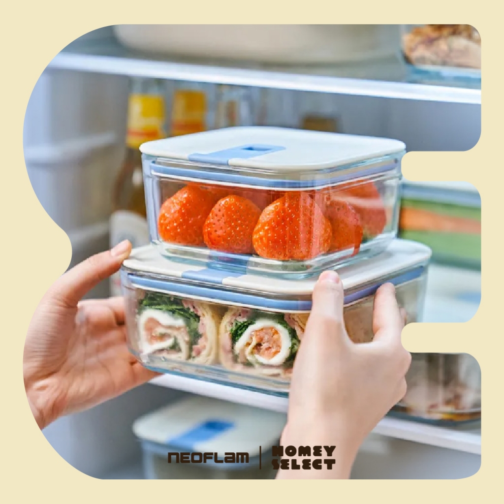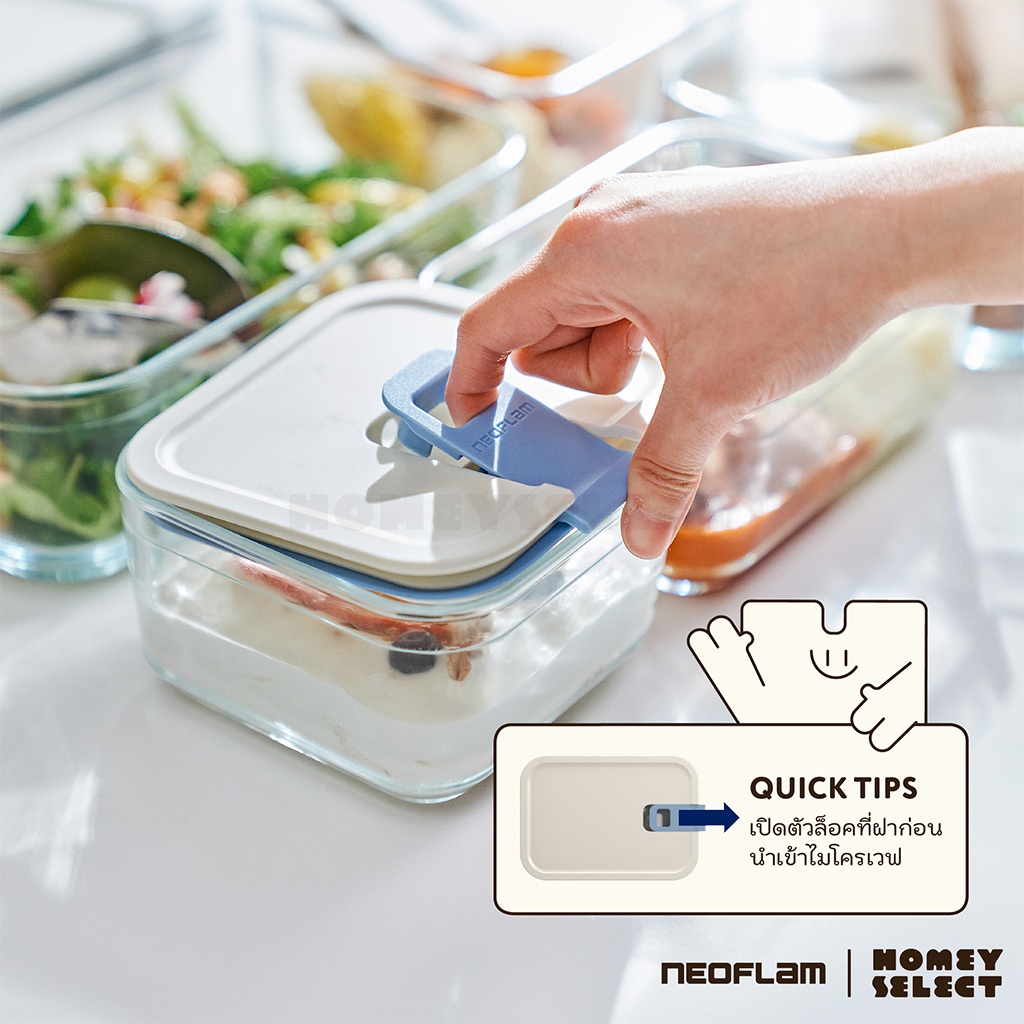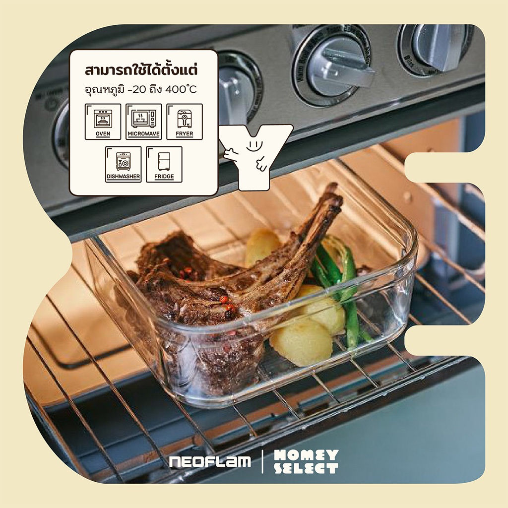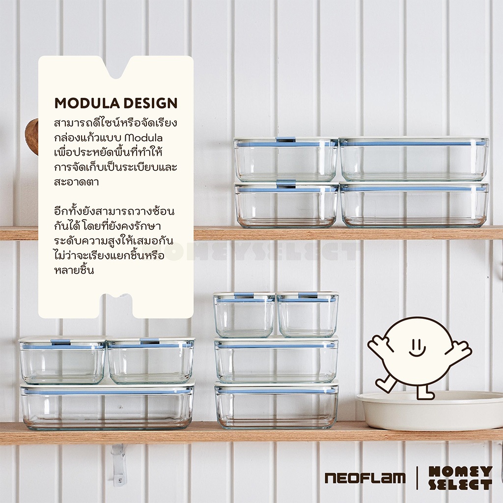 Neoflam Perfect Seal กล่องแก้วสุญญากาศ โมดูล่า VACUUM BOROSILICATE GLASS เข้าไมโครเวฟ เตาอบได้ ทนความร้อนสูง มีหลายขนาด