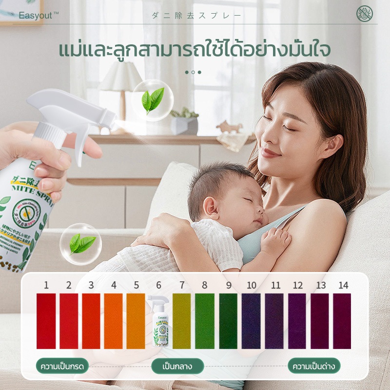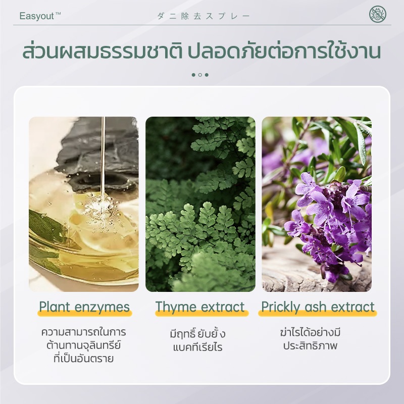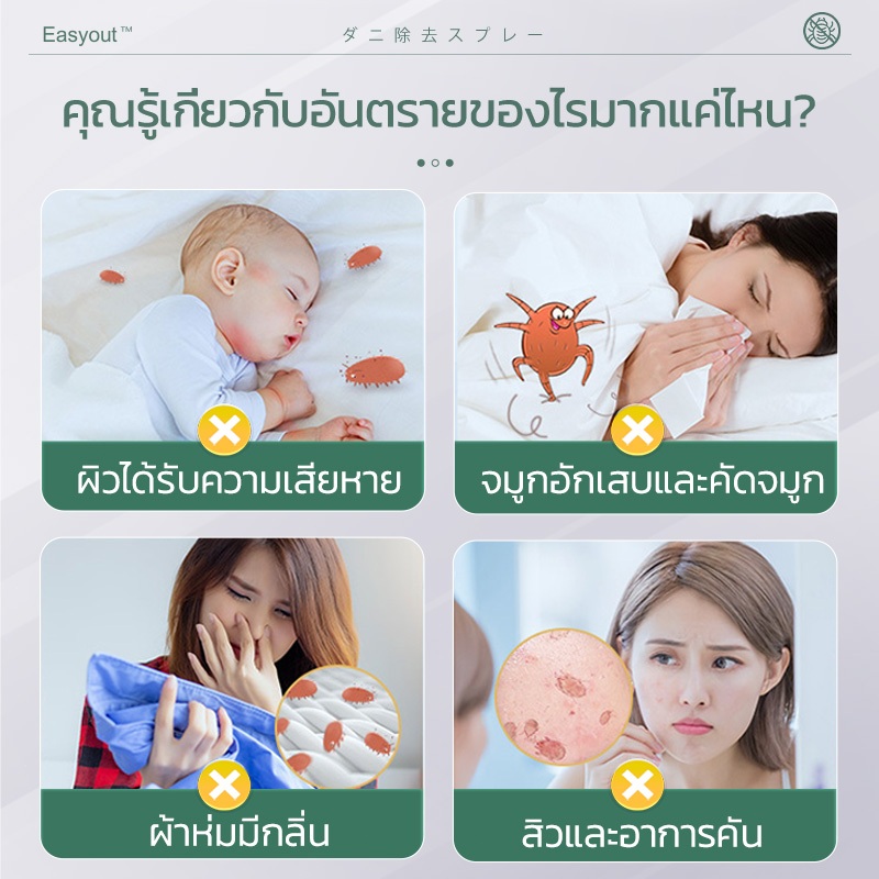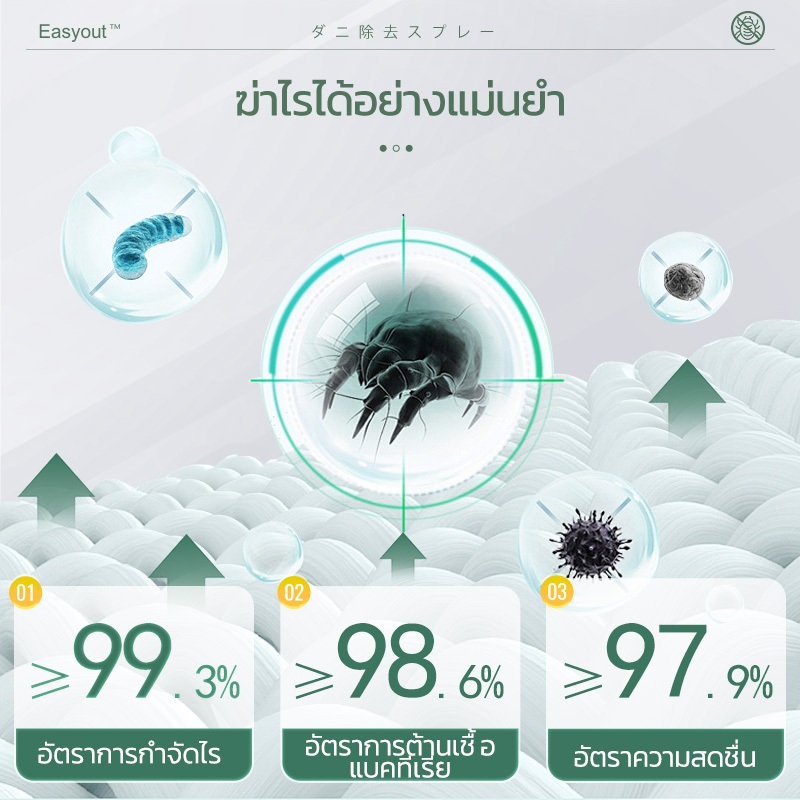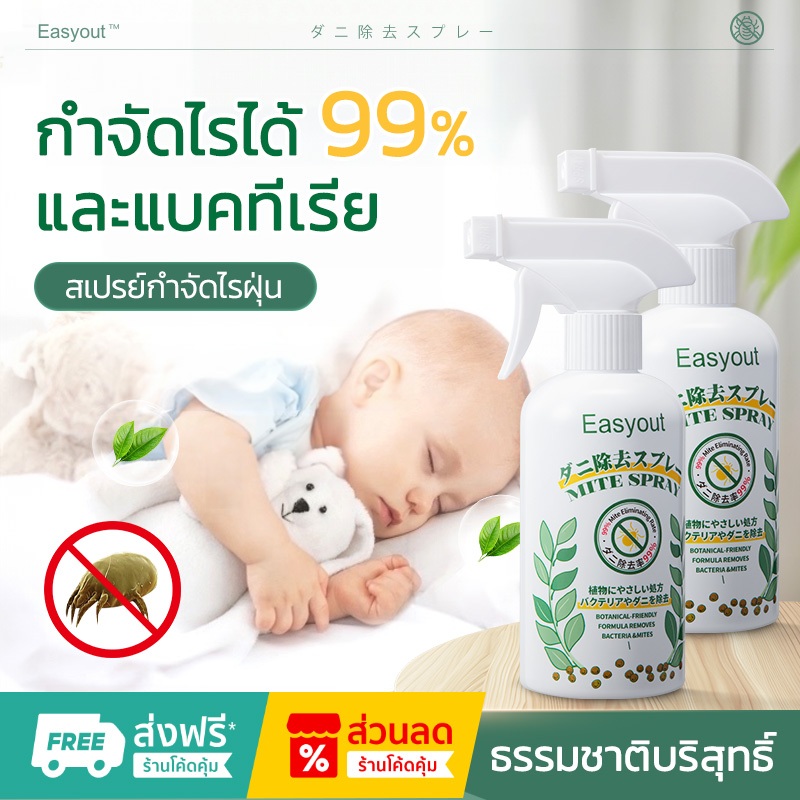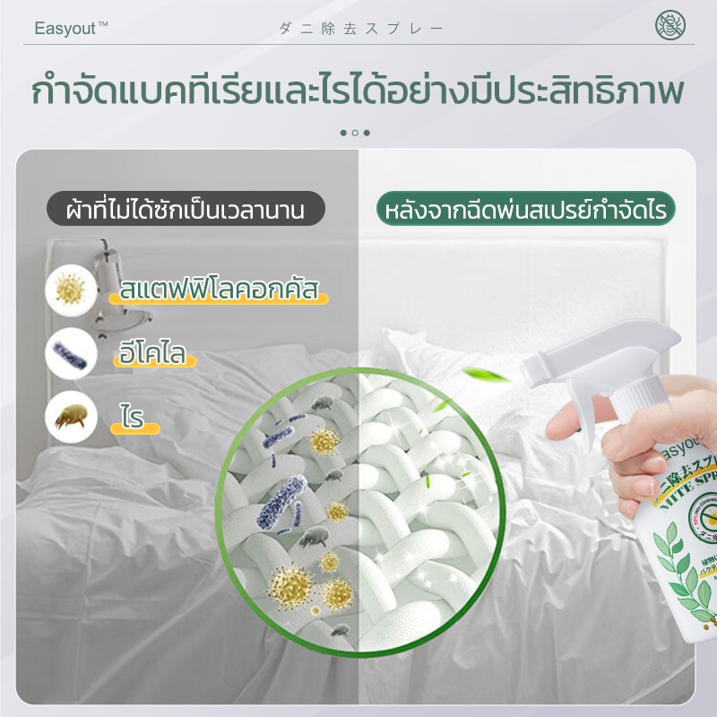 Easyout สเปรย์กำจัดไรฝุ่น กำจัดไรฝุ่น 99% ป้องกันไรฝุ่นและตัวเรือด สเปรย์ไรฝุ่นบนที่นอน หมอน ผ้าห่ม ลดอาการภูมิแพ้ ไอจามคันจากไรฝุ่น