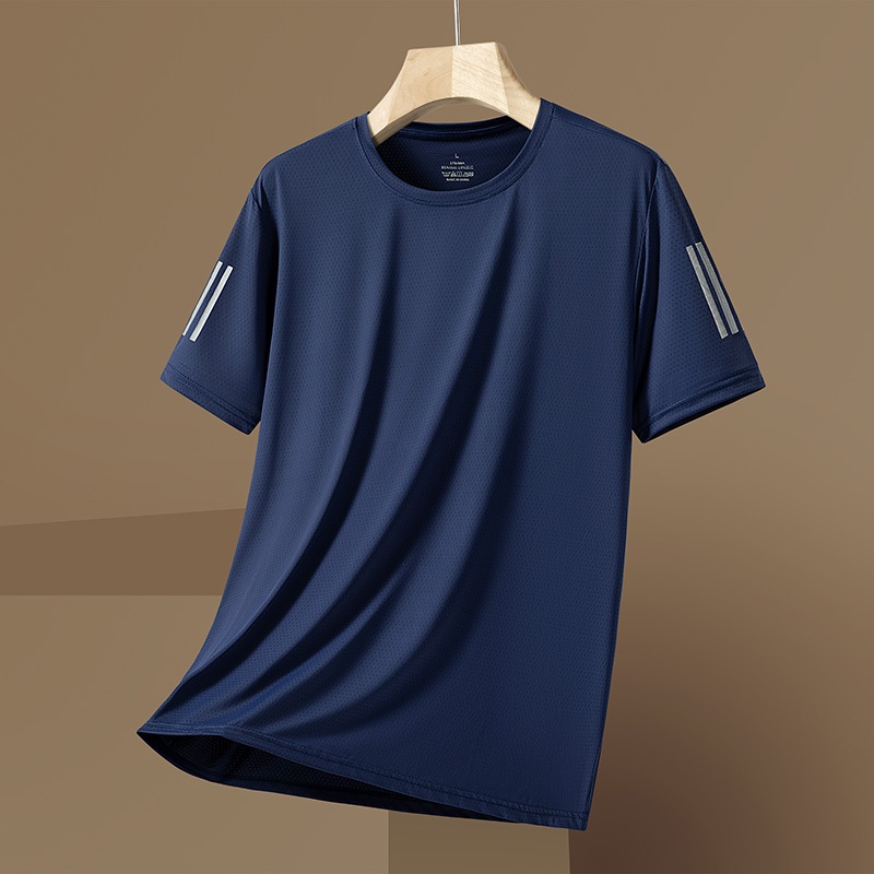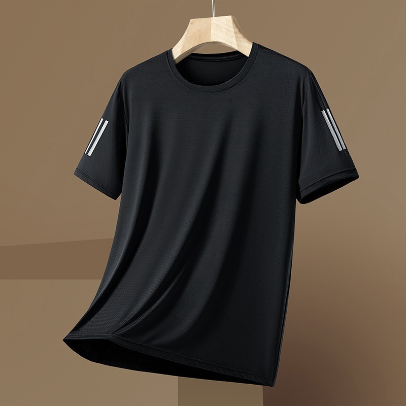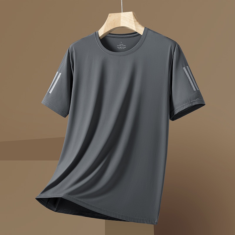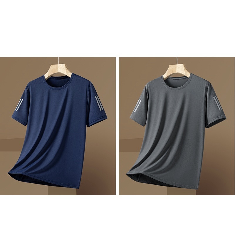 BECOOLMAN-คอกลม ผ้าไหมน้ำแข็ง เย็น แขนสั้น ชาย ฤดูร้อน แบบหลวม ใส่สบาย กีฬา เสื้อยืด