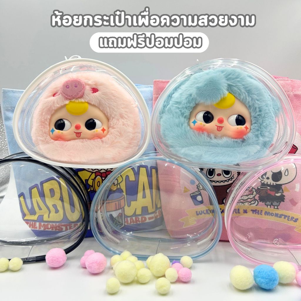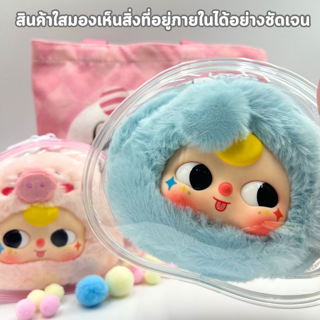 【พร้อมส่งจากไทย】กล่องเก็บตุ๊กตาการ์ตูน สีดํา ทรงกลม กันฝุ่น แบบพกพา พร้อมซิปใส สําหรับตกแต่ง baby three