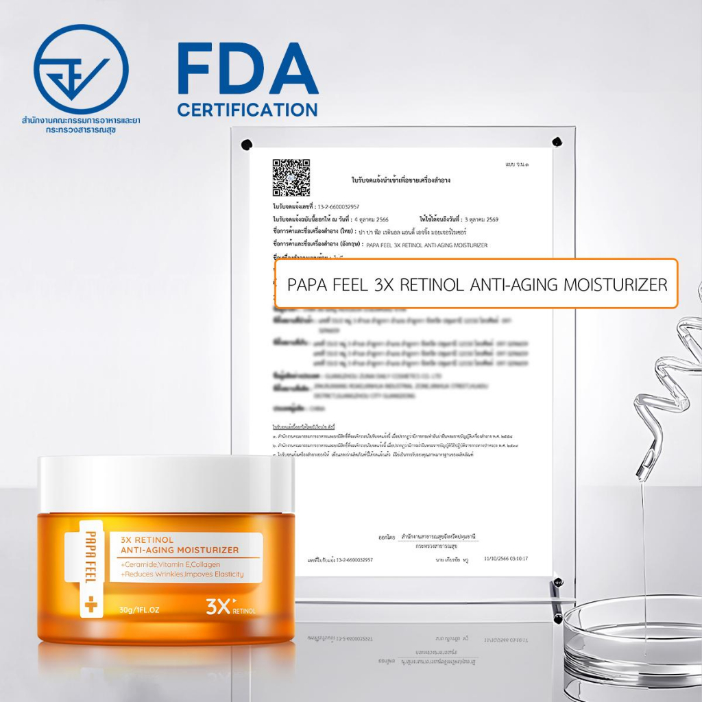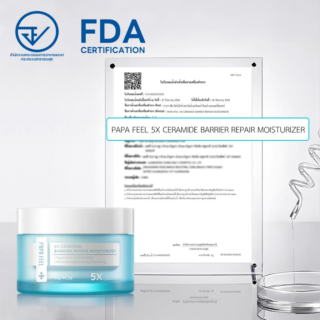 PAPA FEEL เช้า C เย็น A เช้า C:PAPA FEEL 5X CERAMIDE BARRIER MOISTURIZER ครีมทาหน้า เย็น A:PAPA FEEL 3X RETINOL Ceramide Soluble Collagen ครีมทาหน้า PAPA FEEL 5X CERAMIDE BARRIER MOISTURIZER ครีมทาหน้า 30g น้ำหนักสุทธิ:30g ส่วนผสมที่สำคัญ: Ceramide NP, Ceramide AS, Ceramide NS, Ceramide
